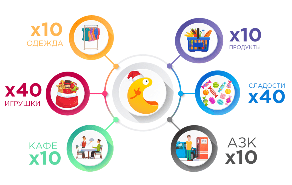 - Bonus program - additional savings for attracting friends, as well as advertising stores.
