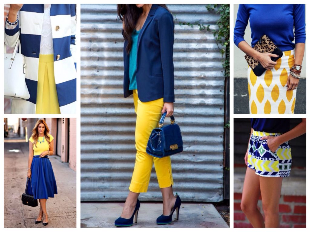 The most fashionable combination of yellow is blue. You can choose these two colors in any interpretation, the main thing is that you do not seem too colorful.