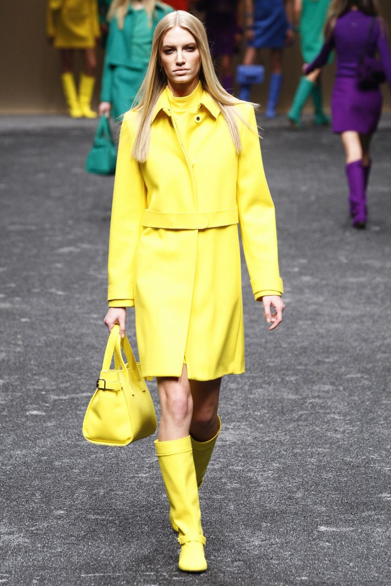 Yellow represents the sun and energy. It is perfect for both blondes and brunettes. Red-haired girls will also be able to wear any thing in a yellow tone, as well as combine it with any things.