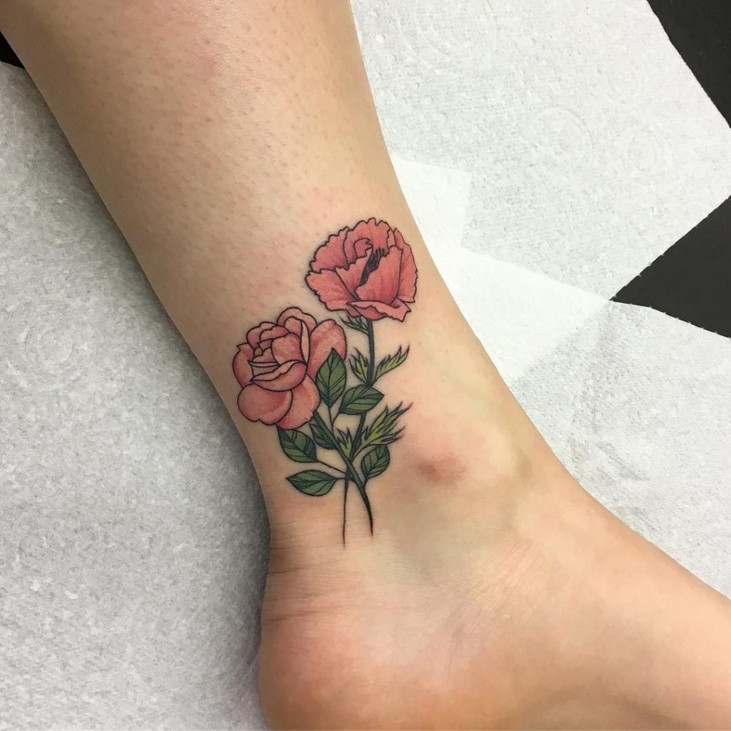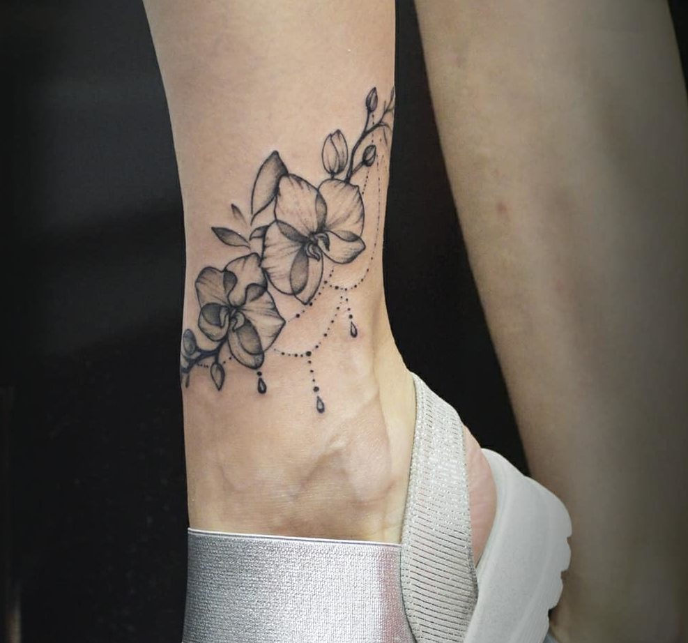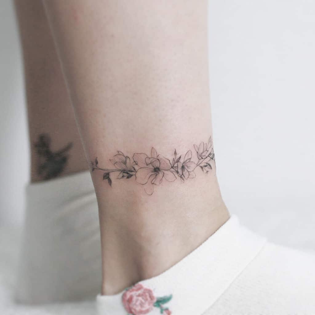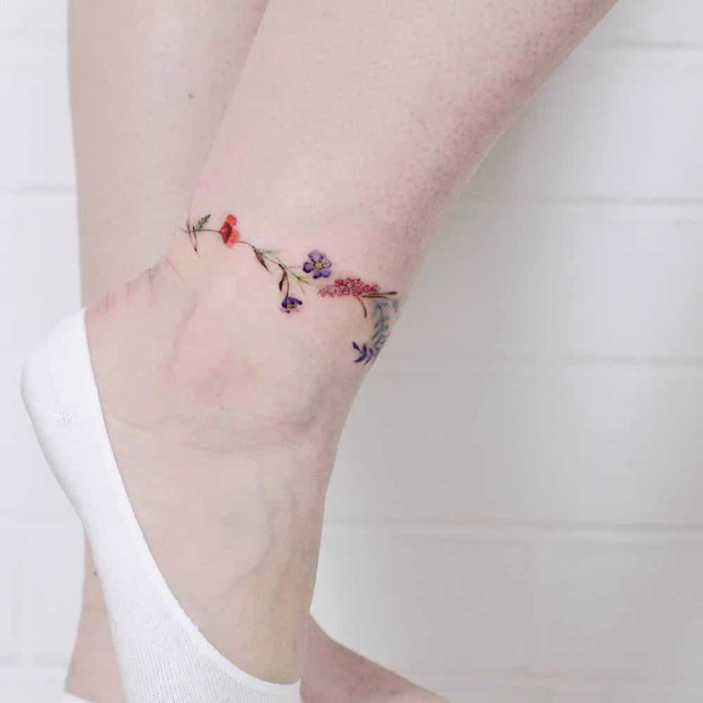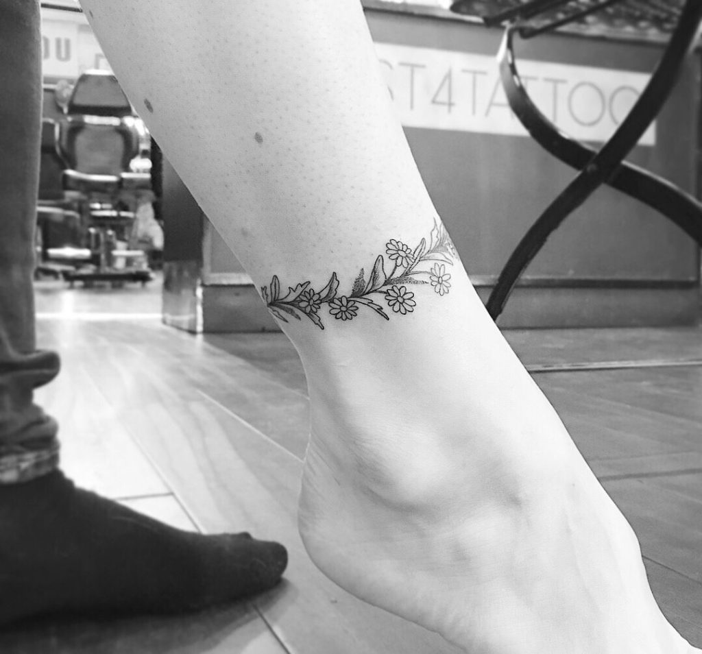 Feminine flower tattoos will decorate any female ankle. The size as well as the appearance of the flowers will depend on your desire. You can make them color or black and white, or even multi-colored.