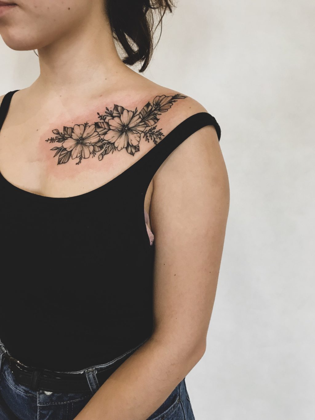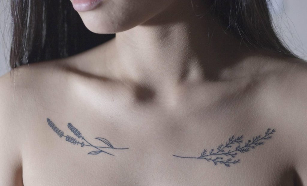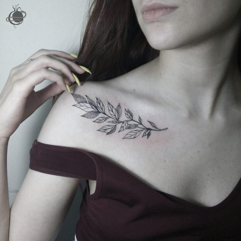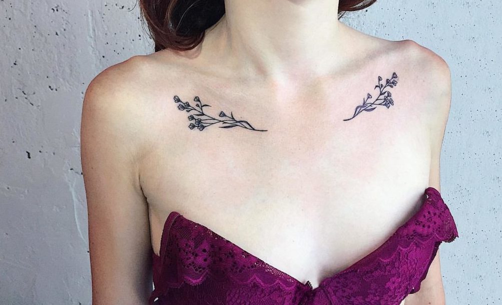Clavicle tattoos have a variety of designs. You can easily make more and small drawings, they can be color or black and white. Most often, double tattoos are made on the collarbone, as if reflecting each other, which has recently become very popular.