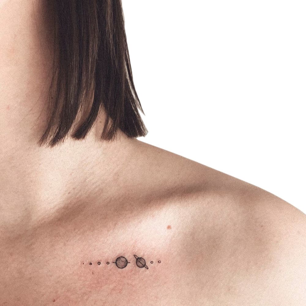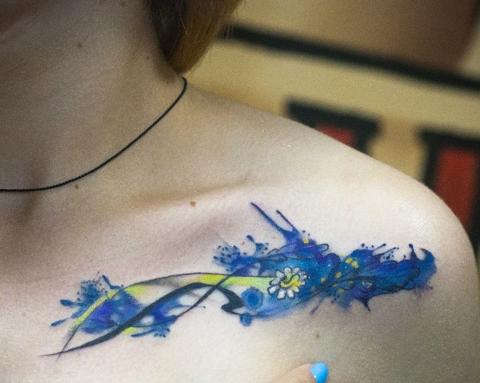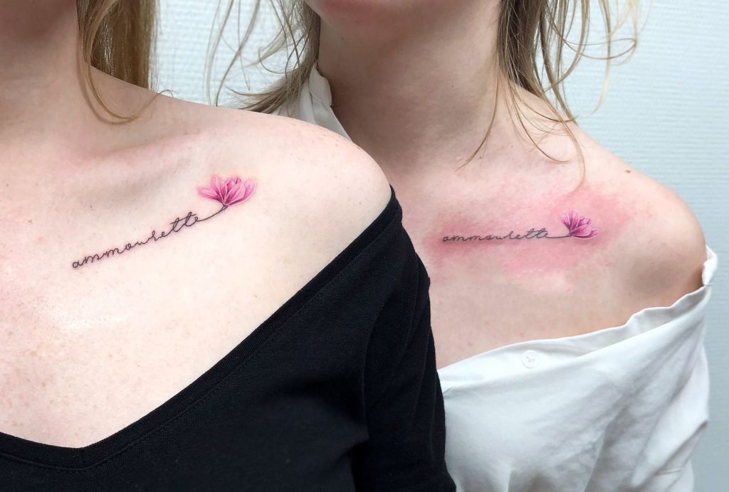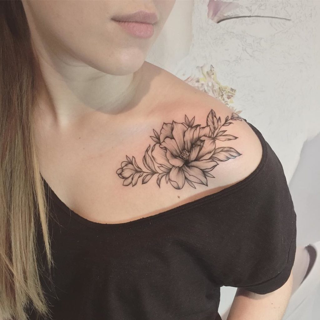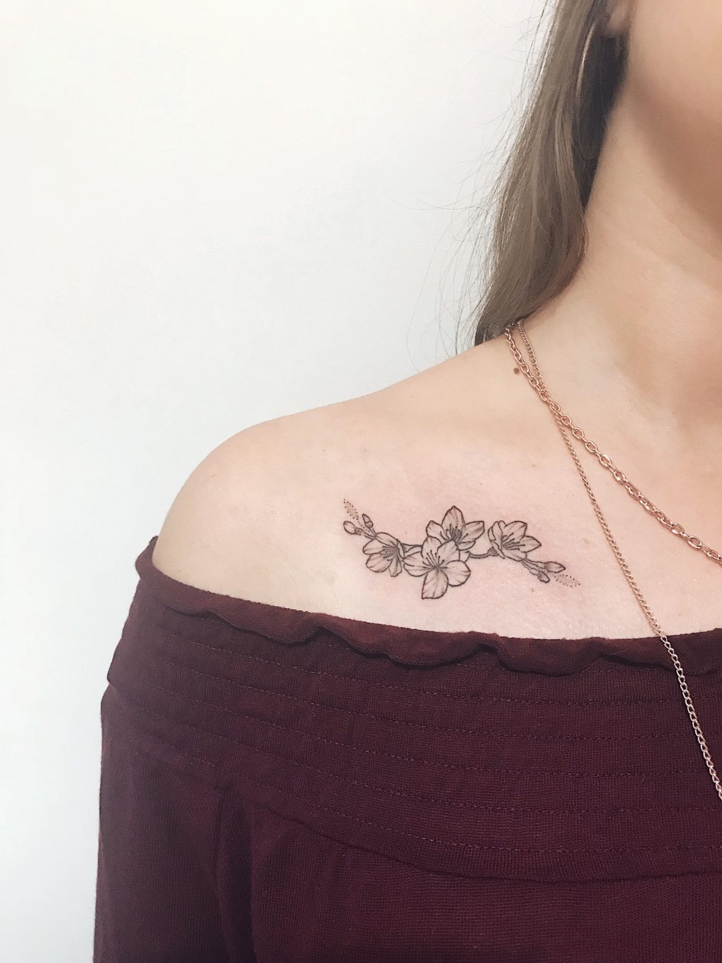 Clavicle tattoos have a variety of designs. You can easily make more and small drawings, they can be color or black and white. Most often, double tattoos are made on the collarbone, as if reflecting each other, which has recently become very popular.