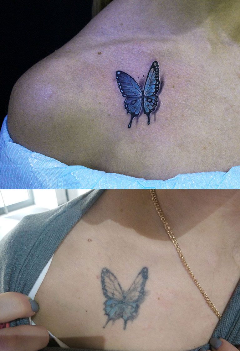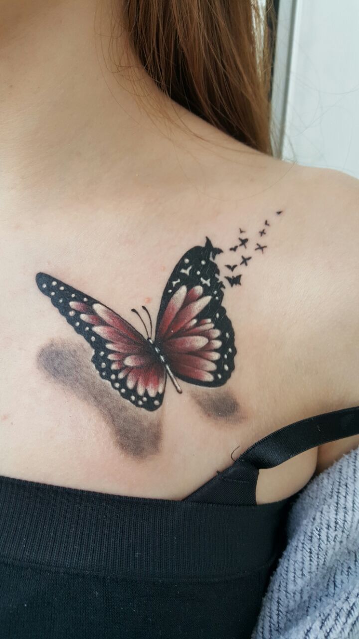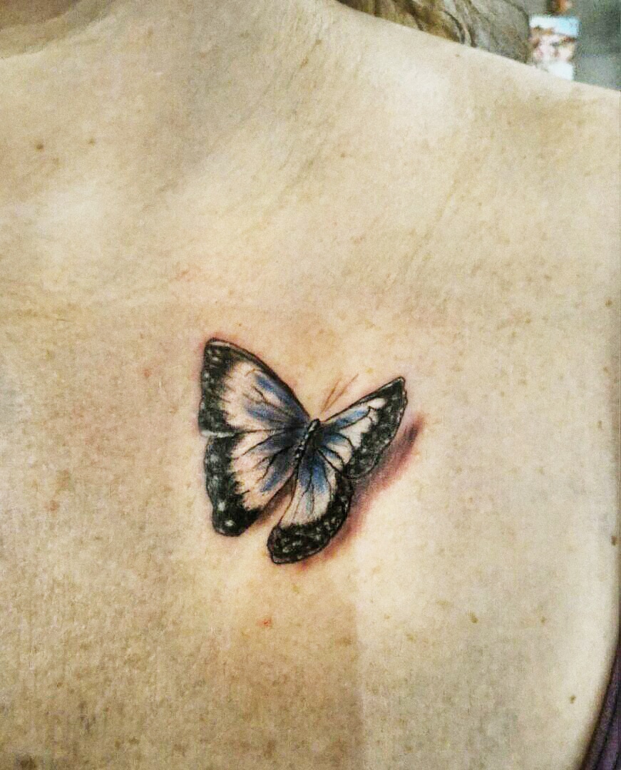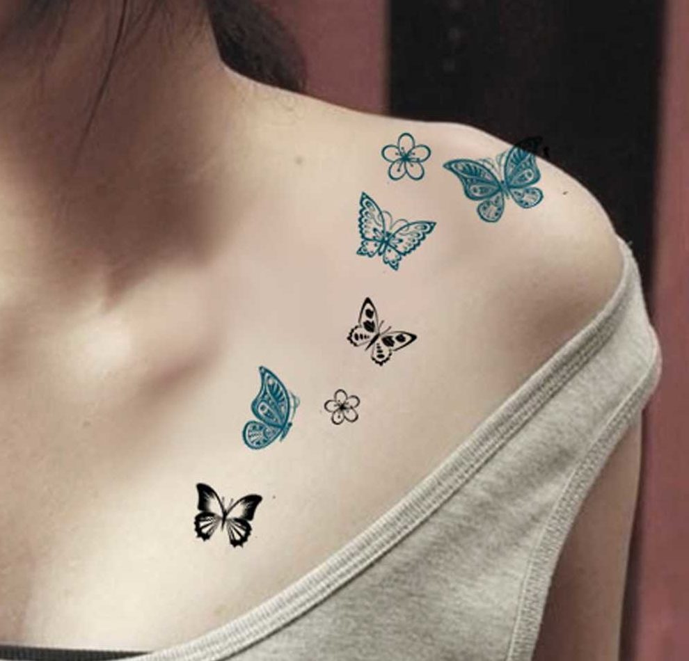 A very feminine and simple tattoo that perfectly decorates your collarbone. The butterfly can be depicted as voluminous, which will create an additional effect from the picture. And they can be ordinary, black and white or color.