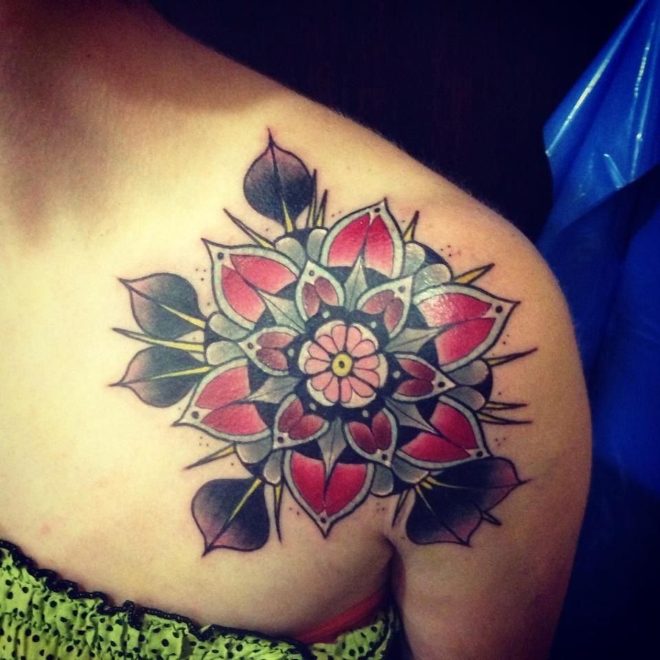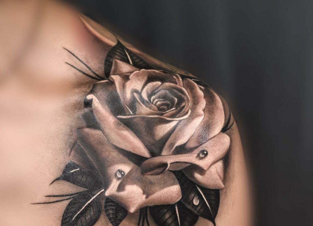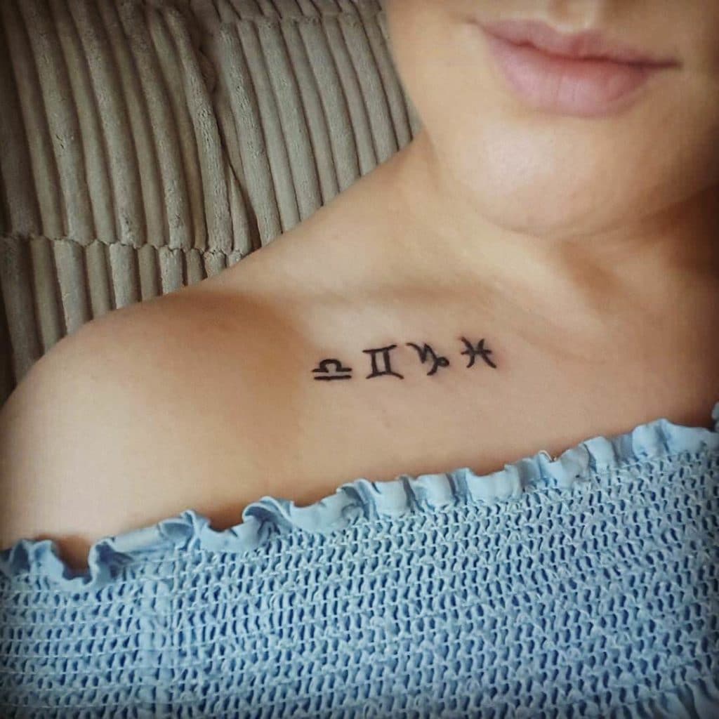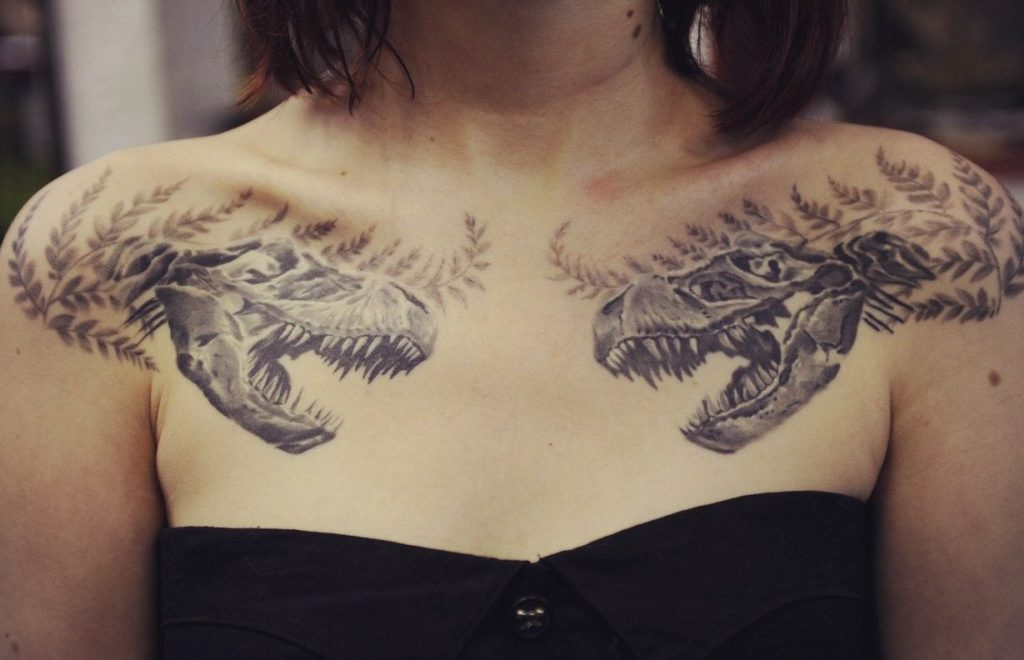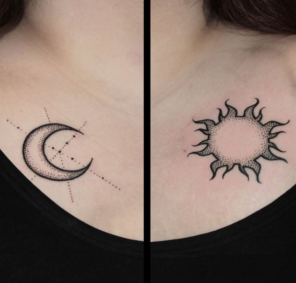 Such tattoos are performed immediately on two collarbones and usually have a mirror image of each other. Basically they are performed in black and white, and the size already depends on your desire.