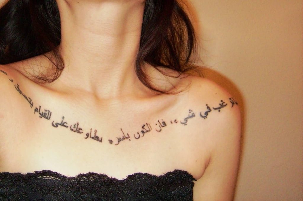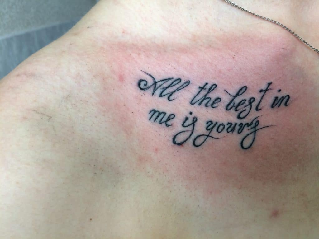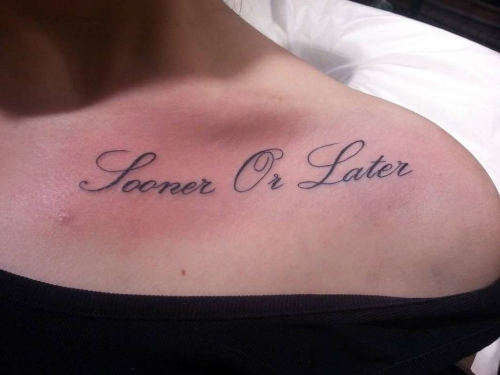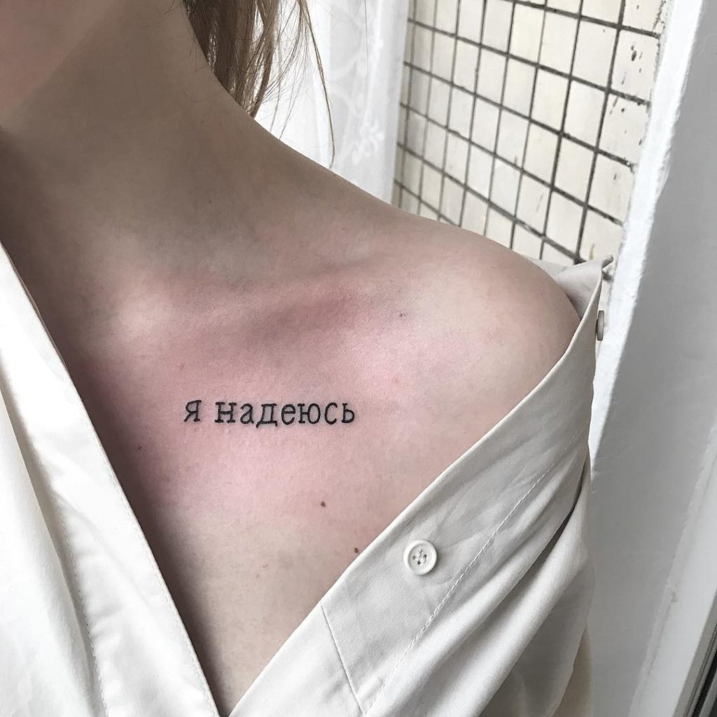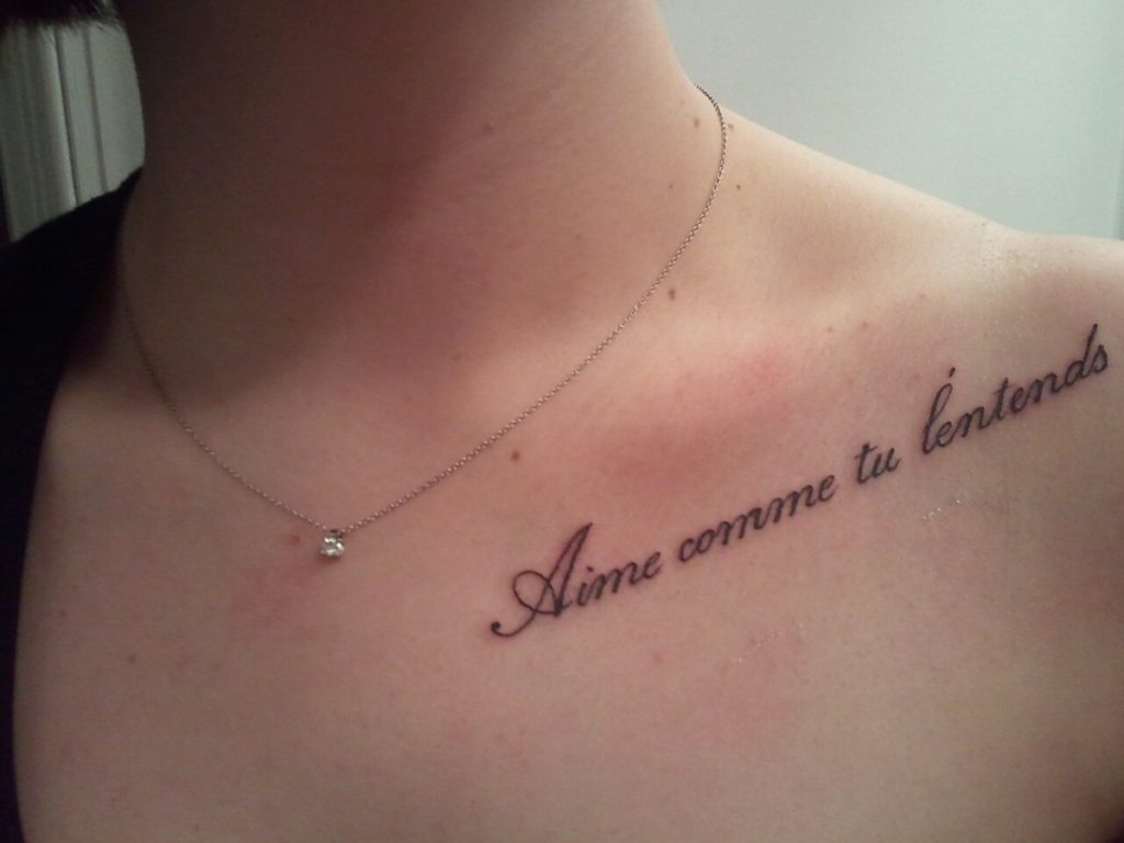 A very popular type of tattoo on the clavicle is the inscription. You are free to do them in any language, just be sure to find out the translation of the phrase that you want to decorate your body for the rest of your life.