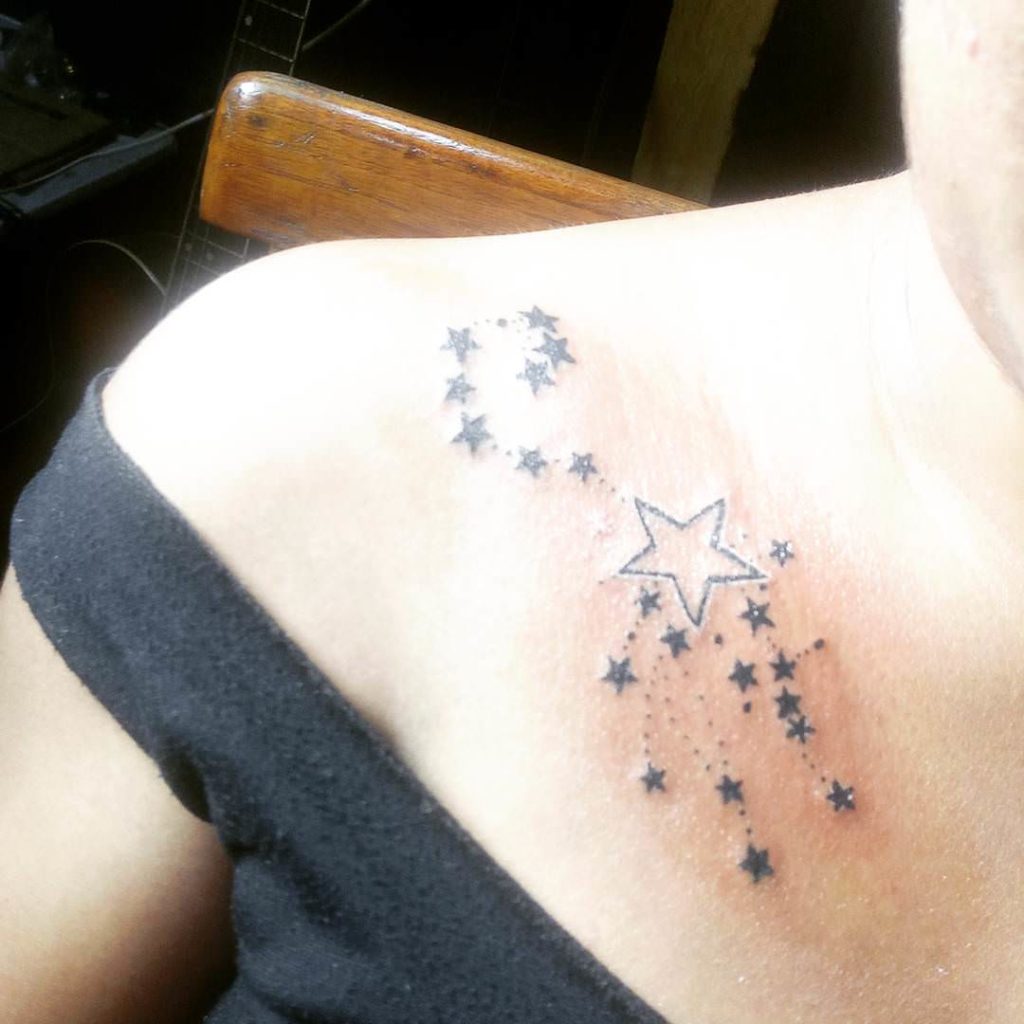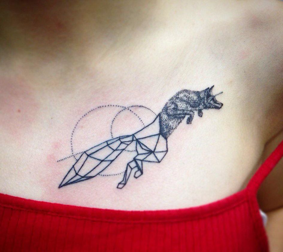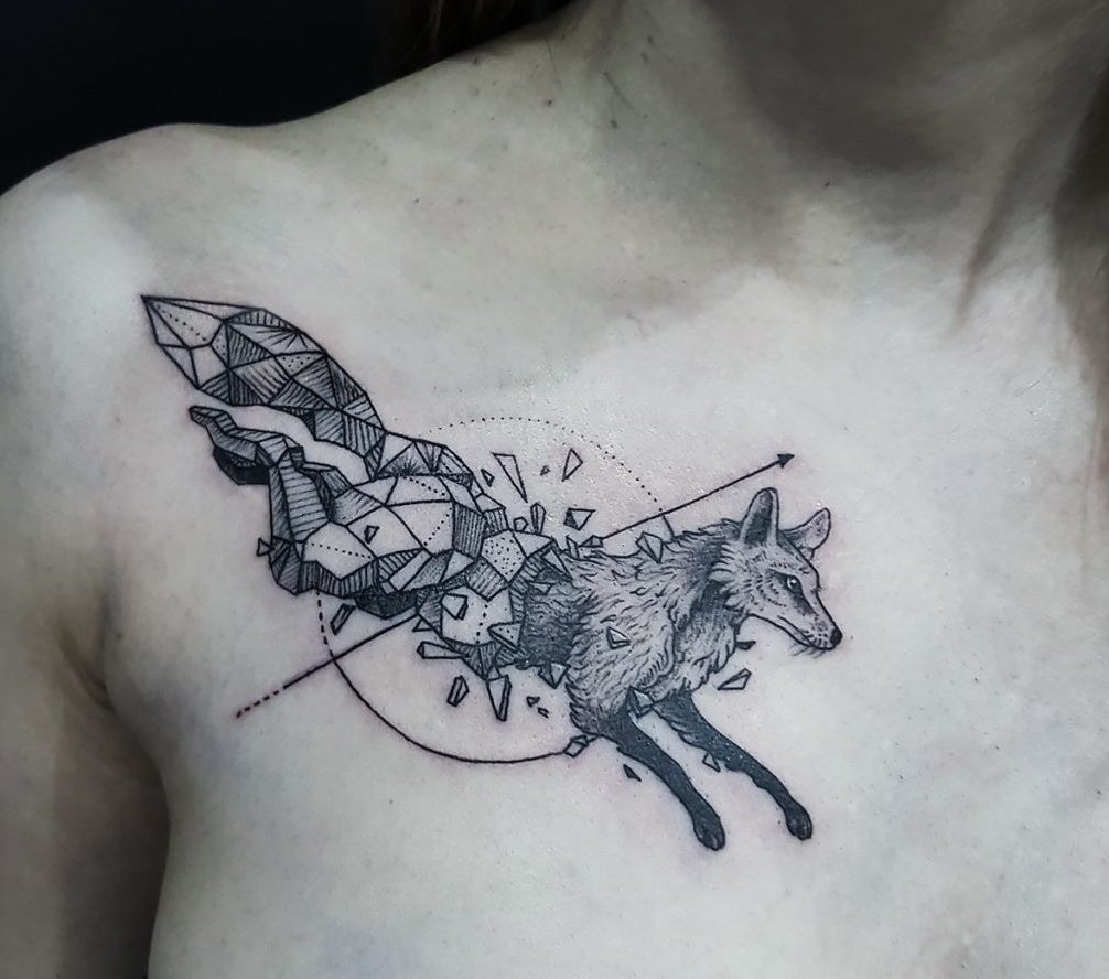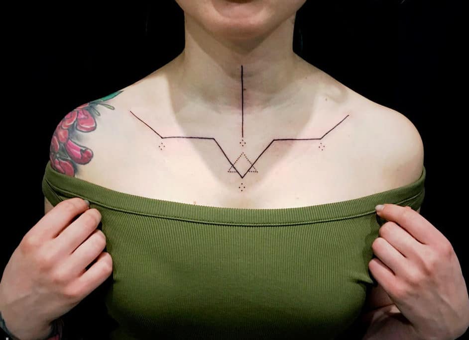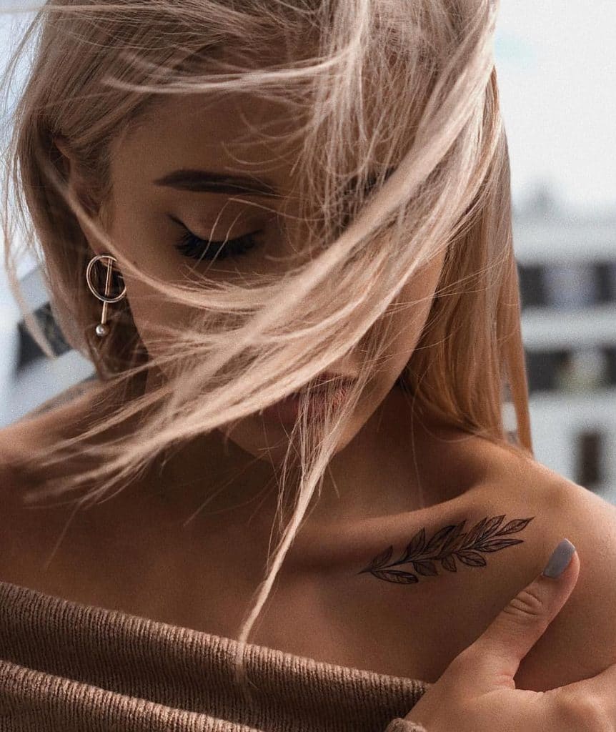 If not one of the topics described above suits you, then just make a small pattern on your collarbone. They can have a different color, shape, as well as appearance. Most often, this is a usual abstraction or geometric shapes.