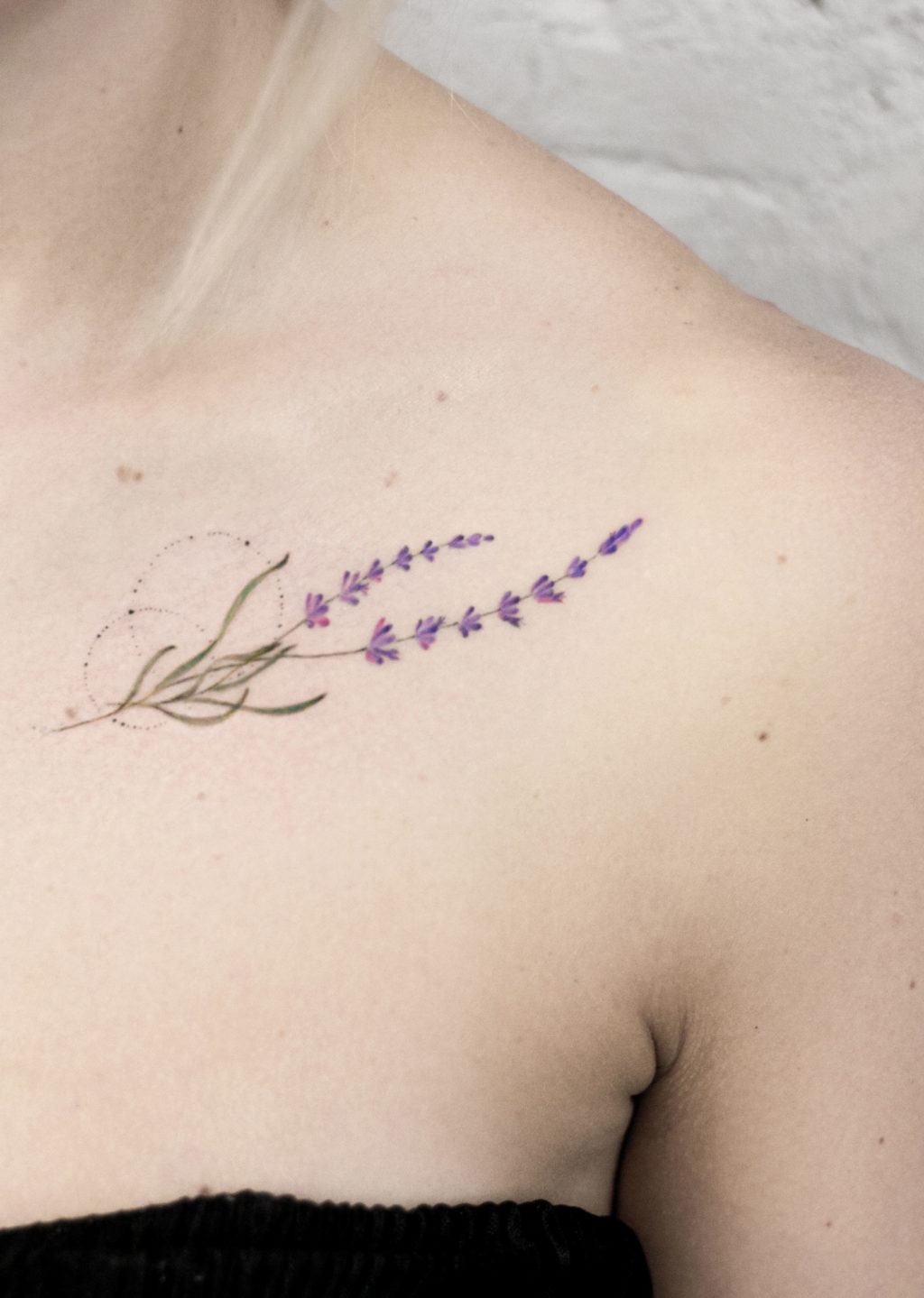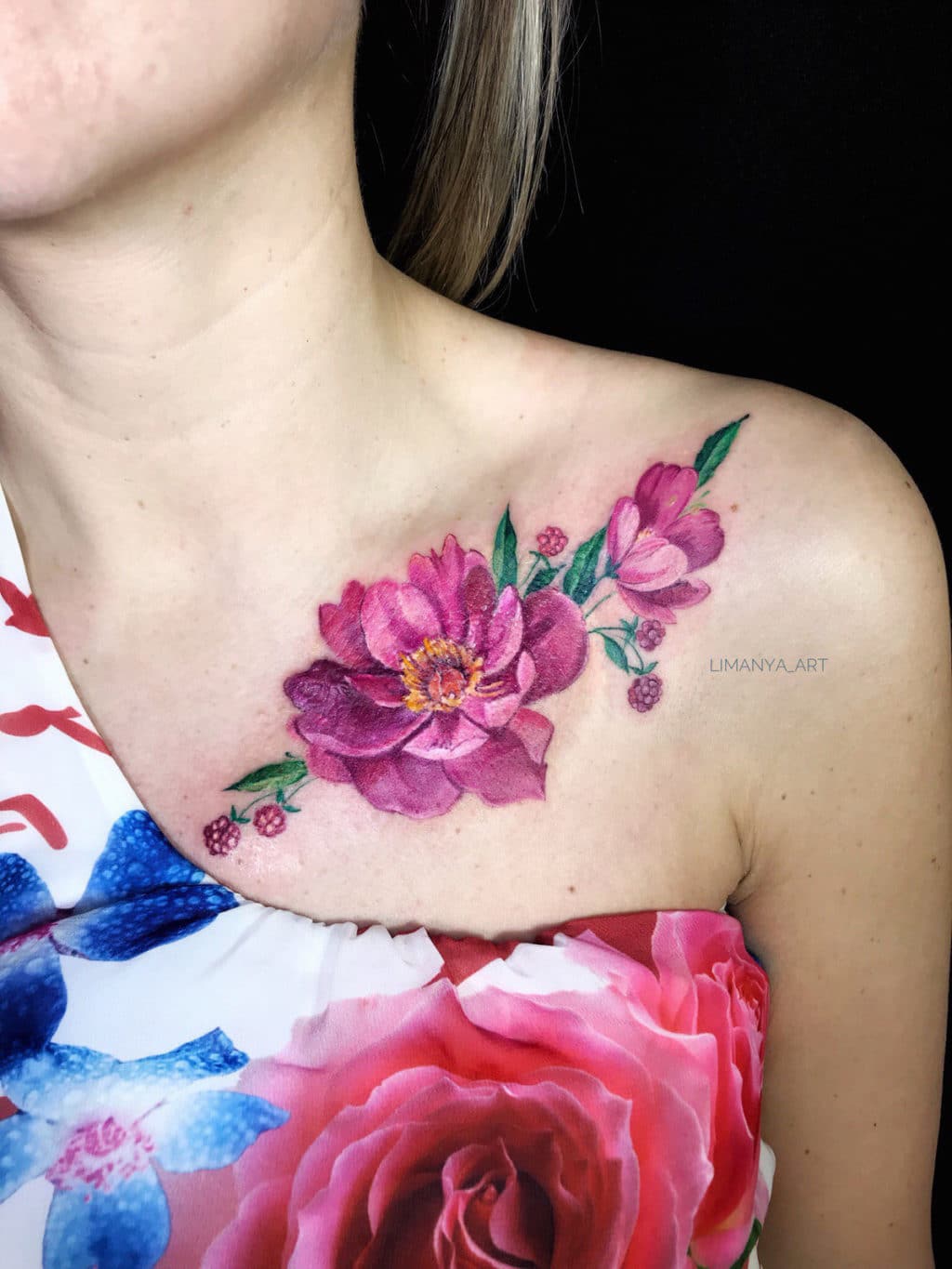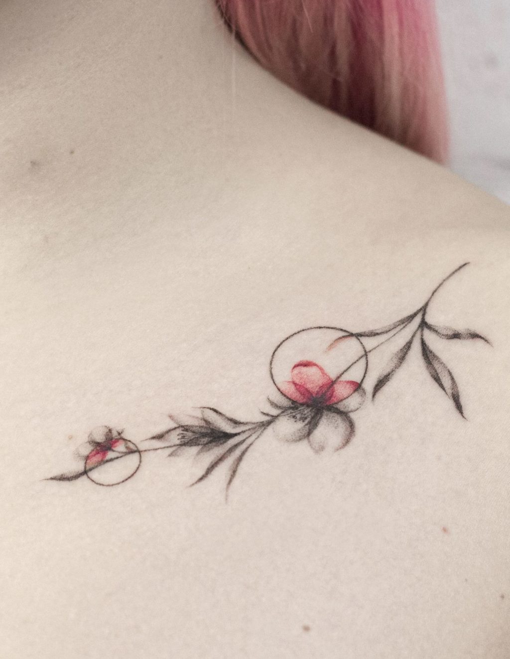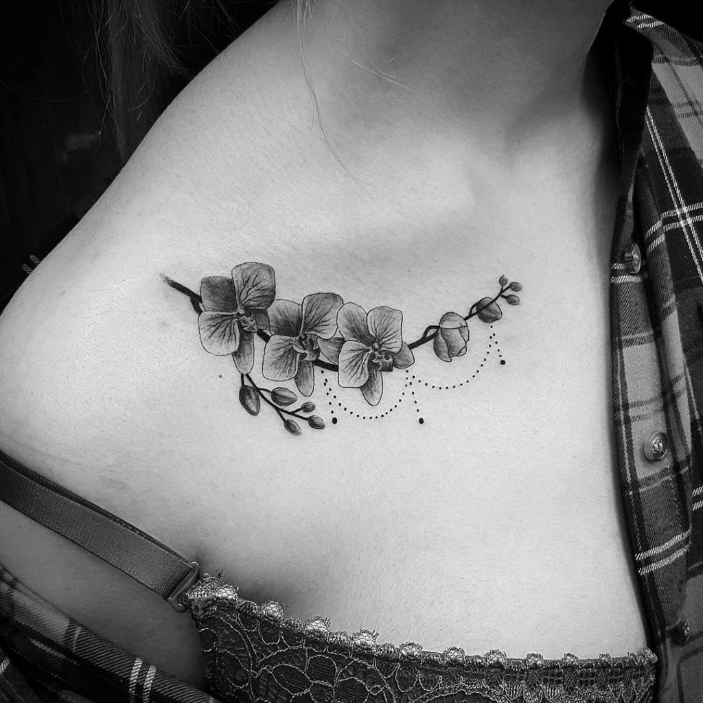 Floral patterns, stems, as well as variegated flower buds - all this is floristry, which will help to beautifully decorate your collarbone. The only rule, as well as the recommendation, is not to select too large floral patterns where there are many elements. Nearby, such a tattoo will not look bad, but from afar, like a solid, black spot.