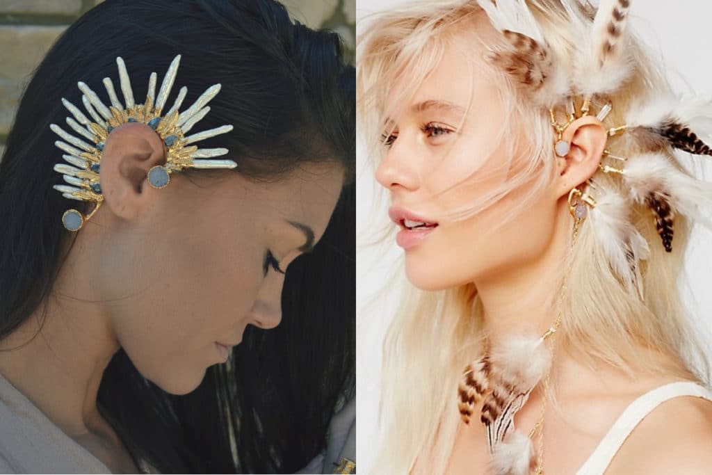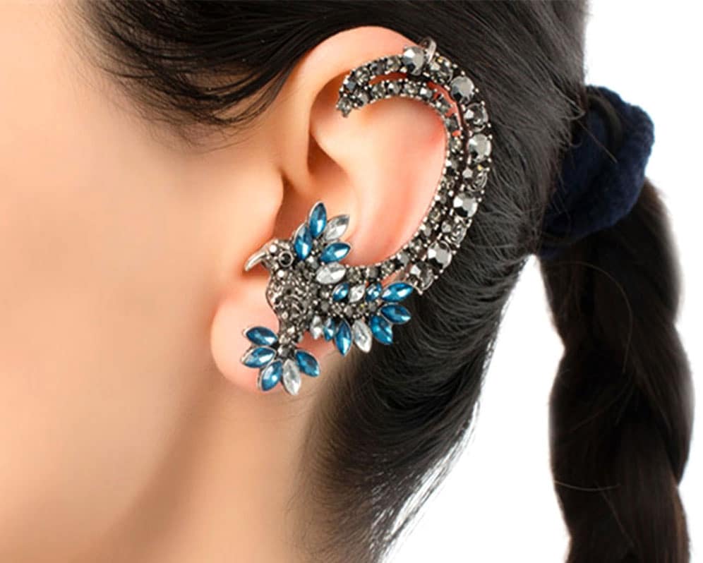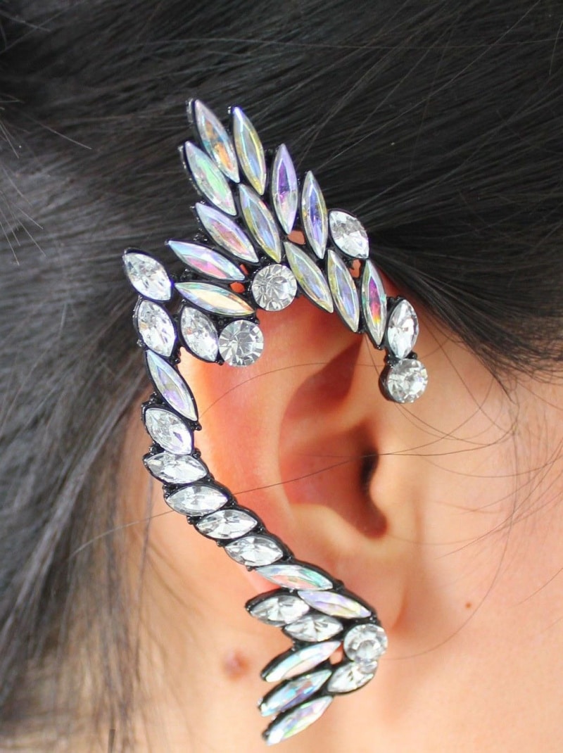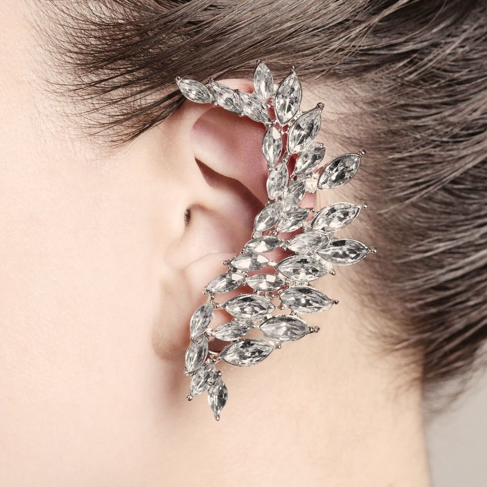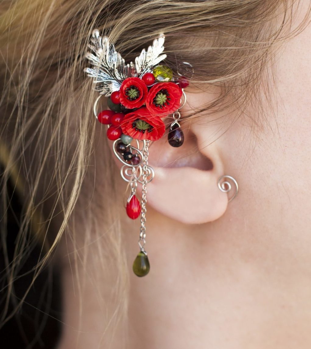 But on the other hand, such earrings are very original, elegant, and sometimes very shocking. Rhinestones, broken glass, stones, metal inserts and feathers - all these are integral elements of such cuffs. Another of the most interesting and amazing decors will be flowers, which can be decorated with cuffs.