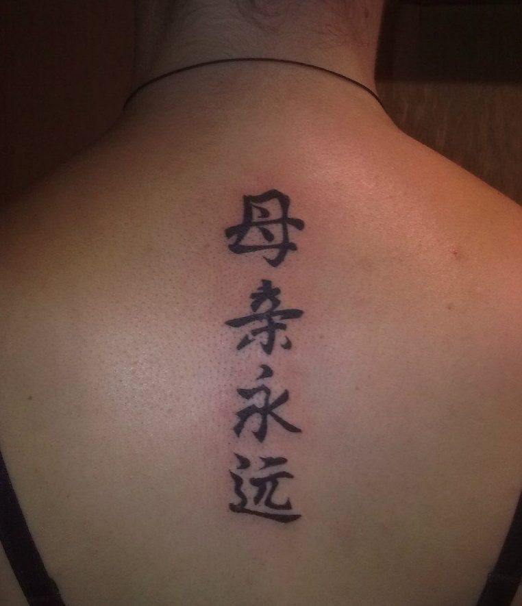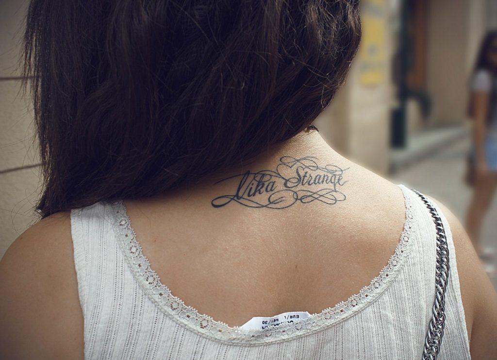 Due to the large area, at least whole texts can be written on the back. You can fill texts horizontally, vertically, or in an arc. You can hide the inscription itself, for example, by letting it down the spine. Alternatively, it can be made more visible in the neck or lower back region.