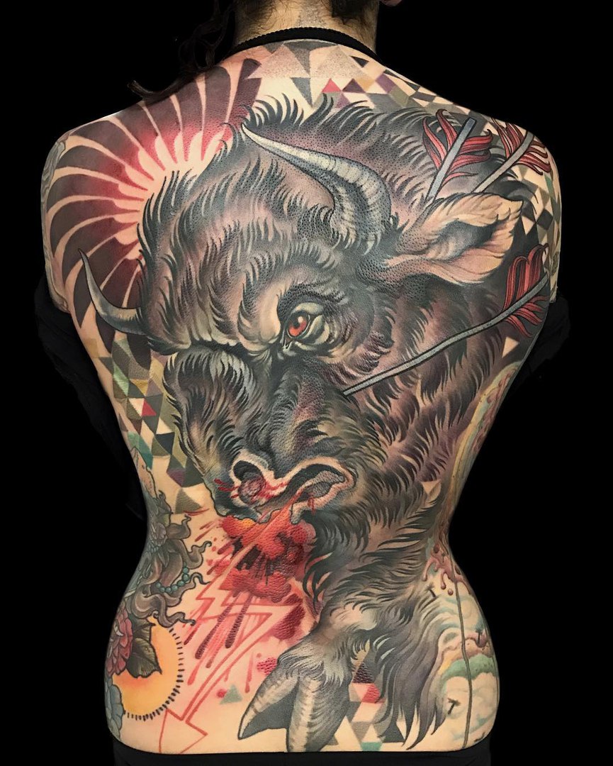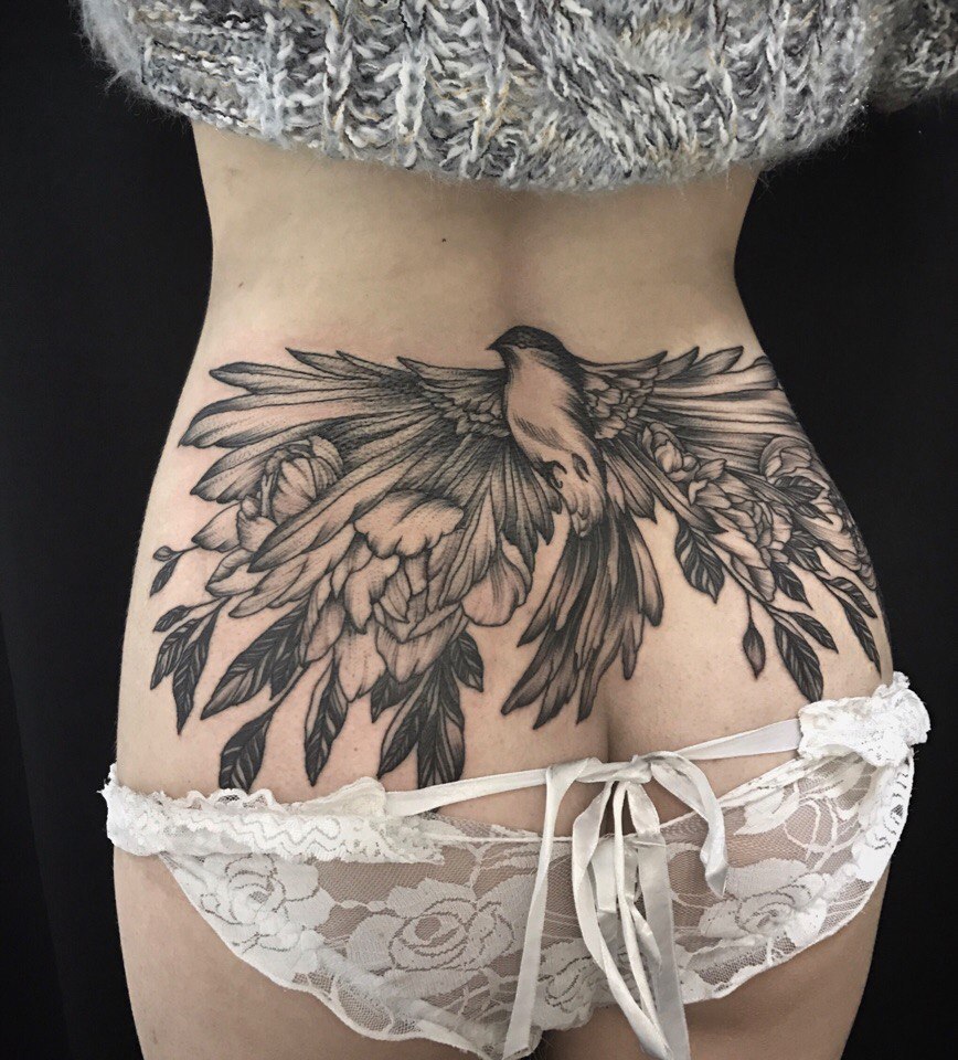 At the same time, you can “hammer” your entire back with a detailed pattern, realistic drawings of animals or birds with spread wings. It is a large back area that allows masters to create and create. Here, it will be up to your taste, as well as the boundaries of the imagination of the master or his skill.
