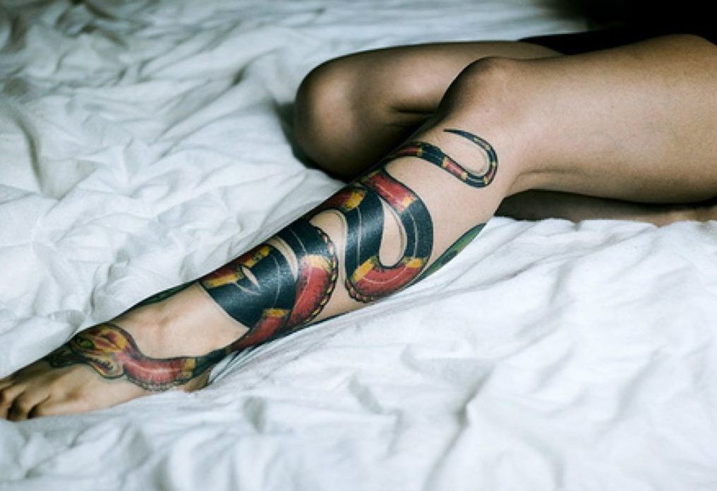 The most aggressive, but at the same time very attractive snake tattoos will look perfect in color on your leg, arm, shoulder or neck.