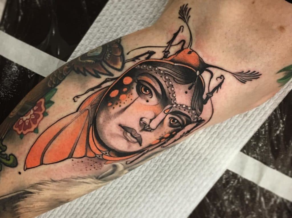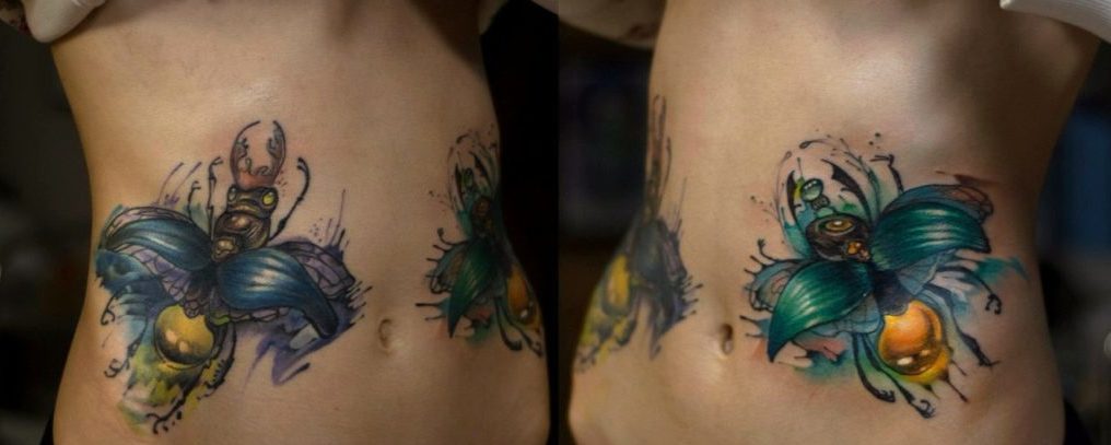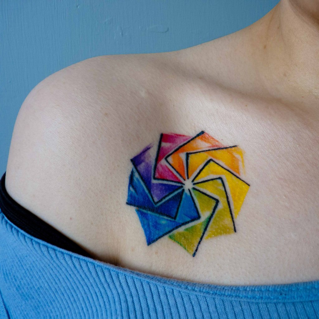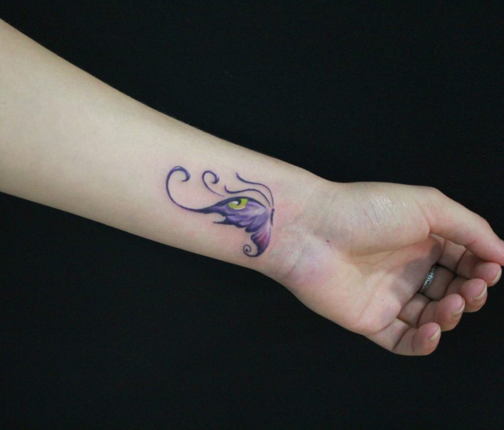 The most popular color tattoos are butterflies. They are cute, tender, colorful. In the color version, such butterflies are made so realistic that it seems they are now flying off your shoulder.