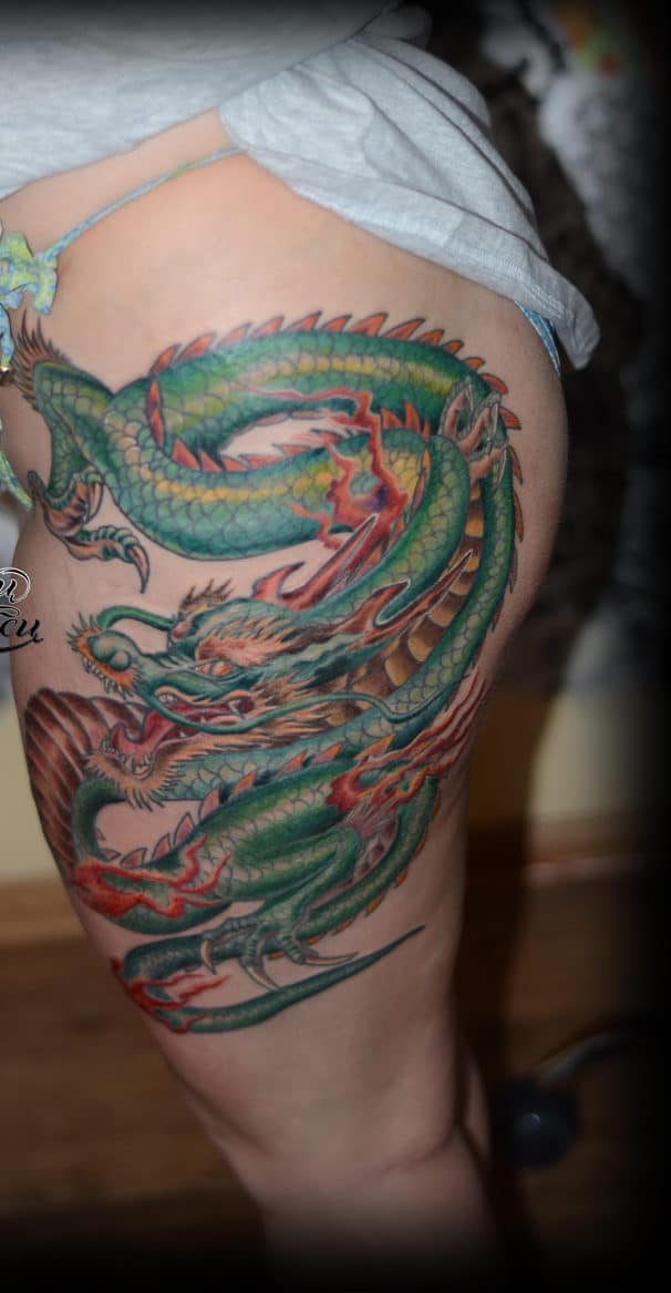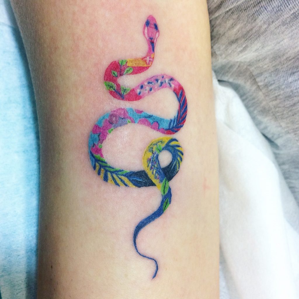 A colored tattoo is visible from afar. She is always bright, juicy, as if alive, unless of course you get to a professional master tattoo artist. A woman can have a colored tattoo on any part of her body, it’s always worth consulting with a master about the choice of color and size.