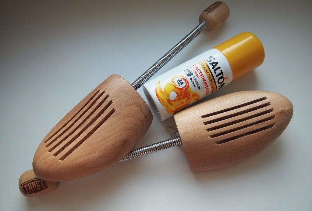 A special stretcher for shoes is sold in stores. It comes from a wooden or plastic base in the form of a spatula, and the rest is a tight spring, at the end of which is a ball. Put such a stretcher in your shoes, and he will stretch it himself.