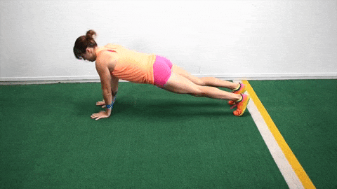 Gum should be put on your elbows and get on all fours. Start moving to the side, try to keep your back straight, and keep your feet upright so that your toes rest on the floor. You should not touch the floor with your knees, so move slowly but surely. The exercise is repeated 10-15 times in 3 sets.