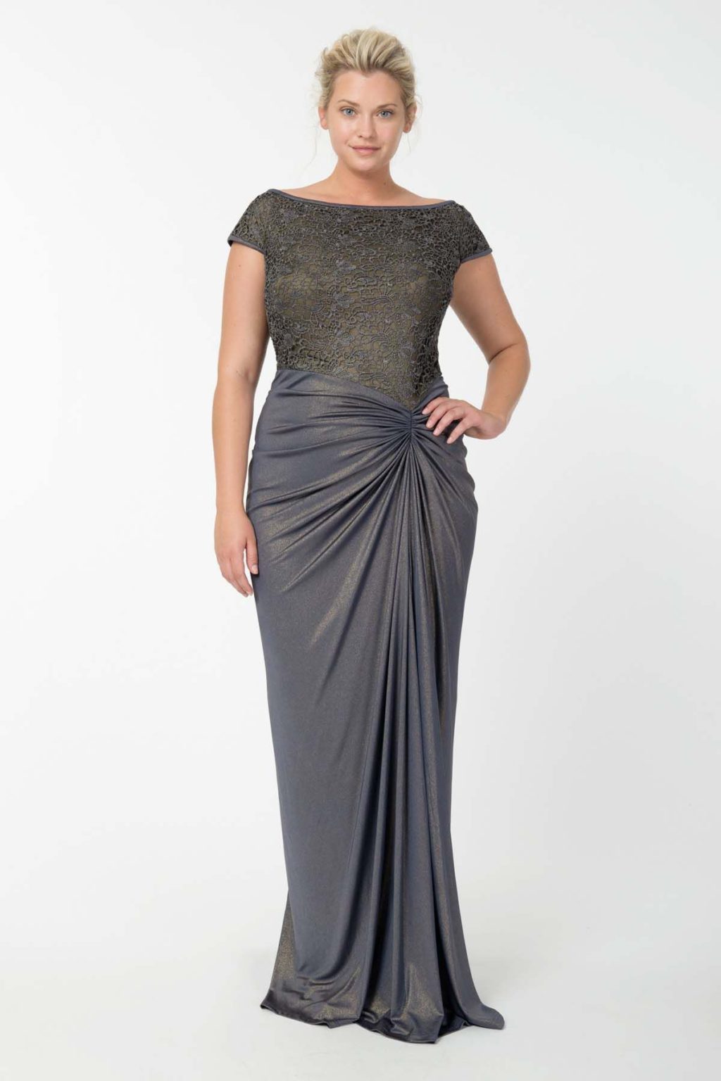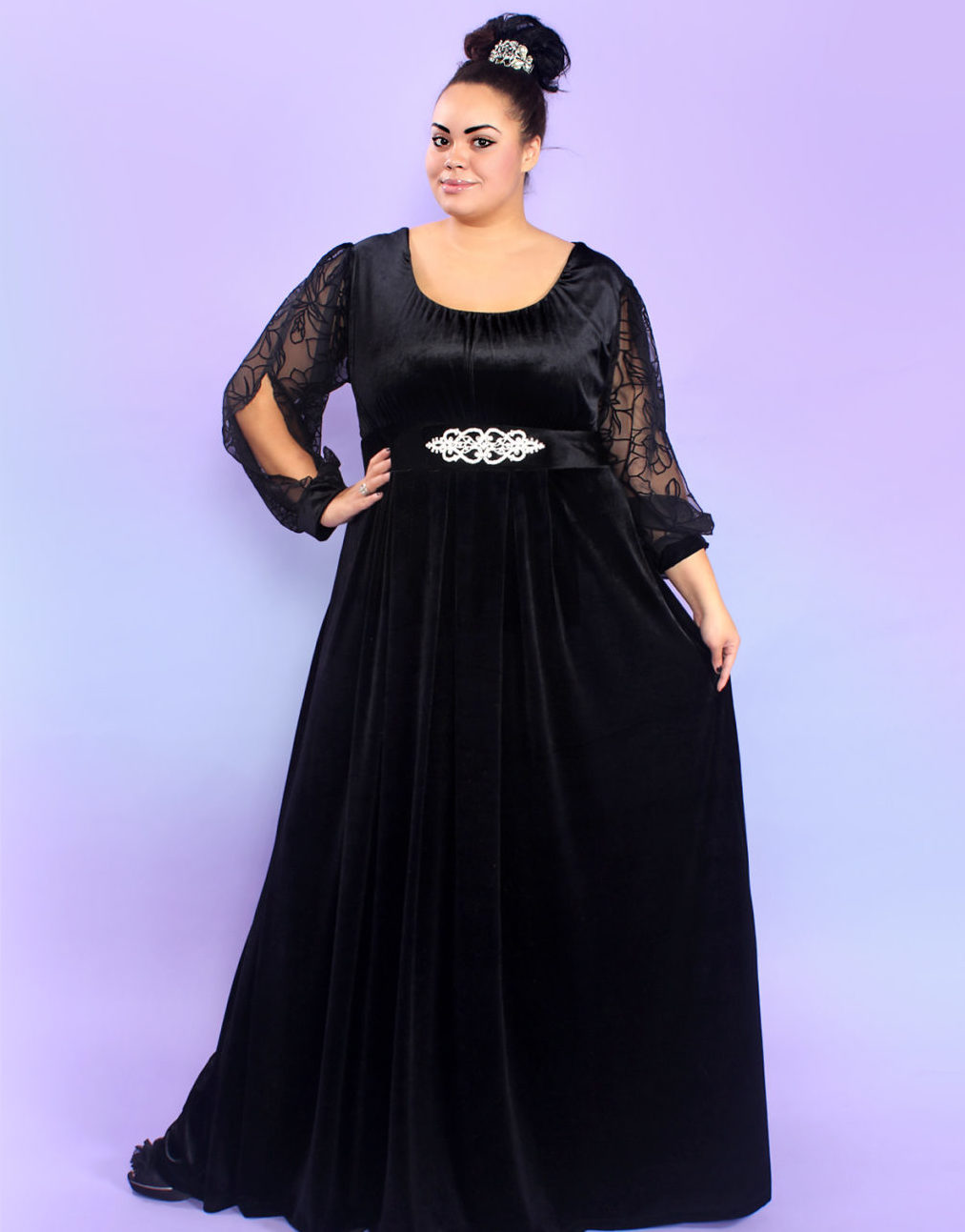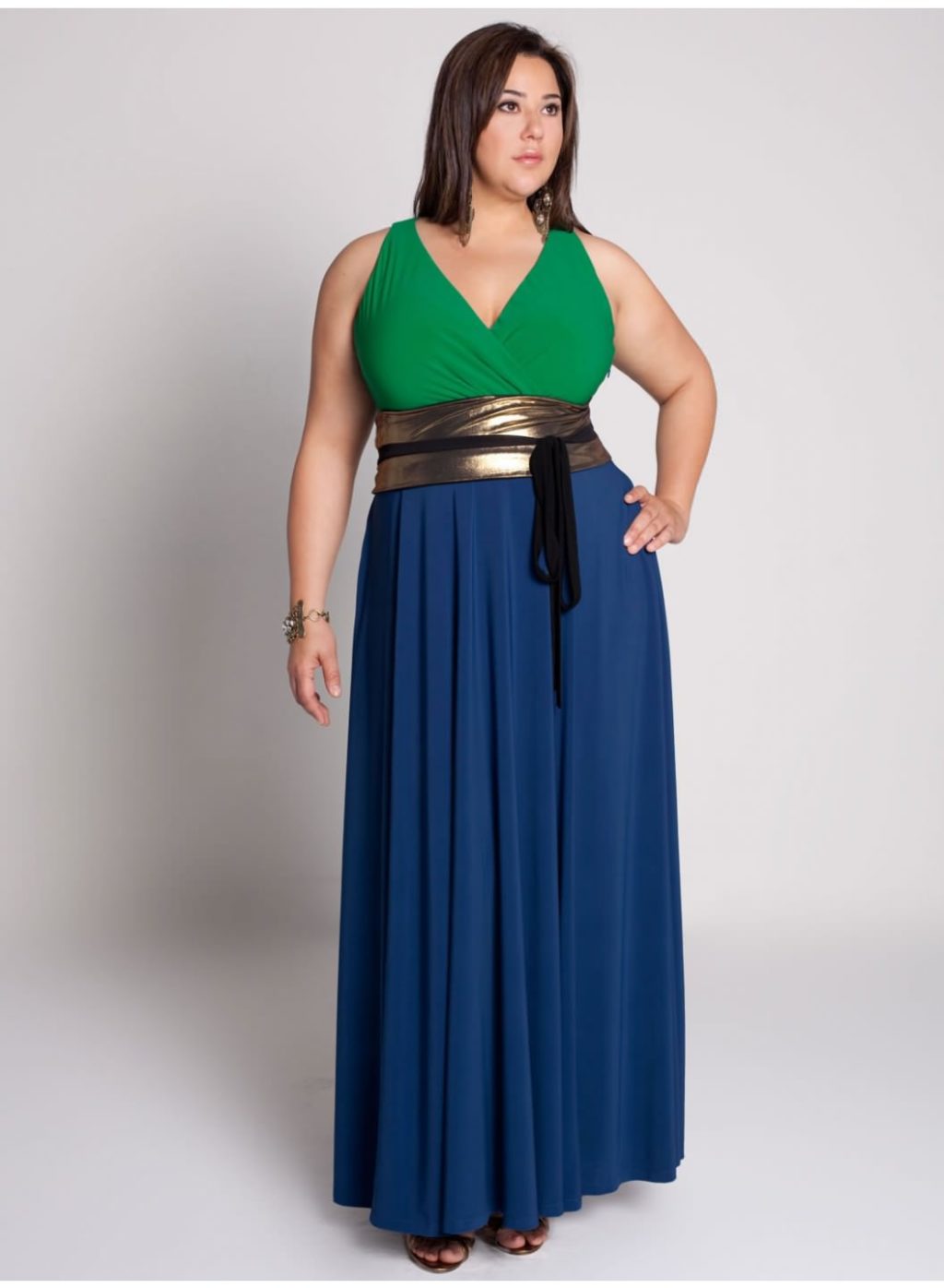 If you are planning a trip to a theater or a restaurant, then easily put on a long, evening dress. Such dresses can come with a smell and have a drapery. The tight-fitting top of the dress will emphasize and highlight the chest, and a looser bottom will hide the protruding tummy and full legs.