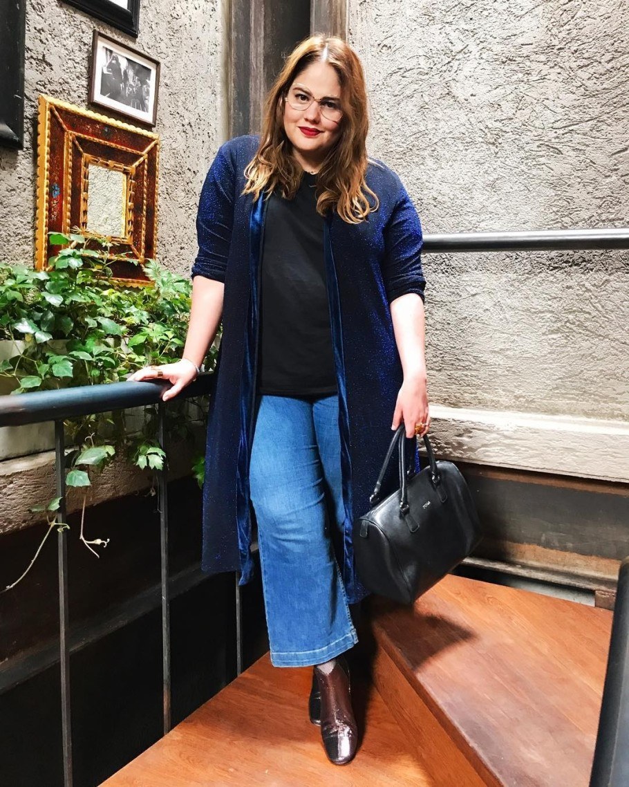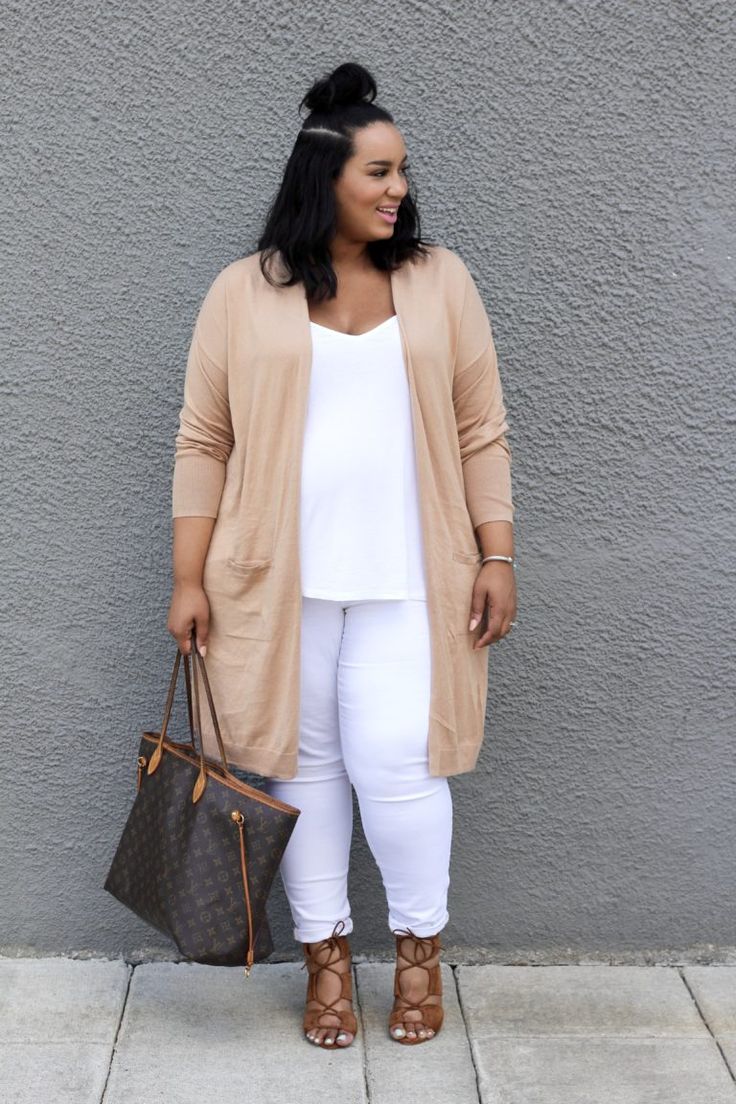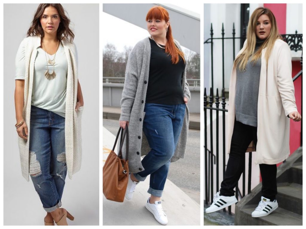 You can create a fashionable look by wearing a long cardigan and tight leggings. And do not be embarrassed by too narrow pants, because a long cardigan will cover your legs, and the image will turn out to be very stylish and fashionable.