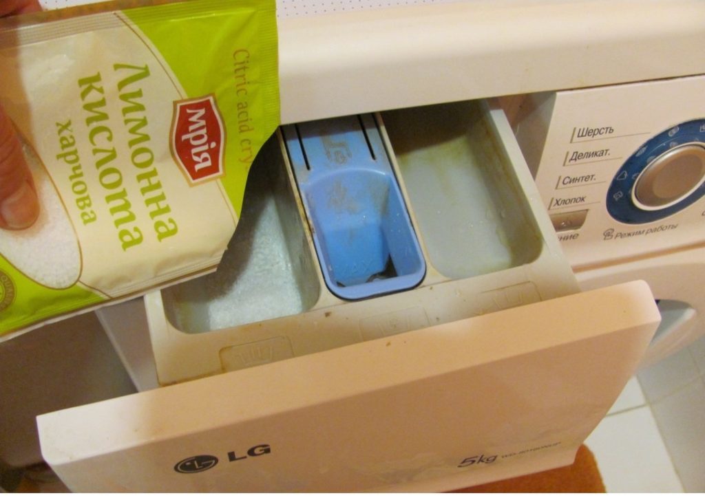 One of the common remedies for removing bad odor is citric acid. With the help of it, not only the smell disappears, but also the scale is removed from the heating element and the drum.
