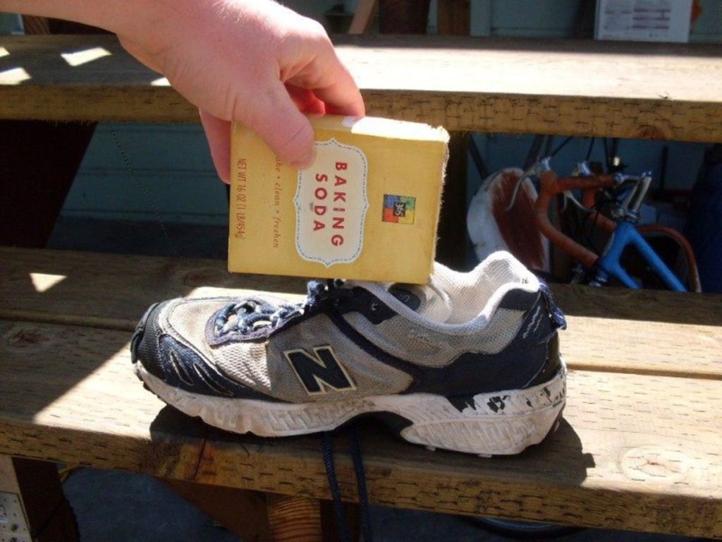 Ordinary baking soda should be poured into the inside of the shoe and wrapped in a plastic bag and left overnight. After that, we shake out all the soda, and then clean up what remains with a vacuum cleaner.