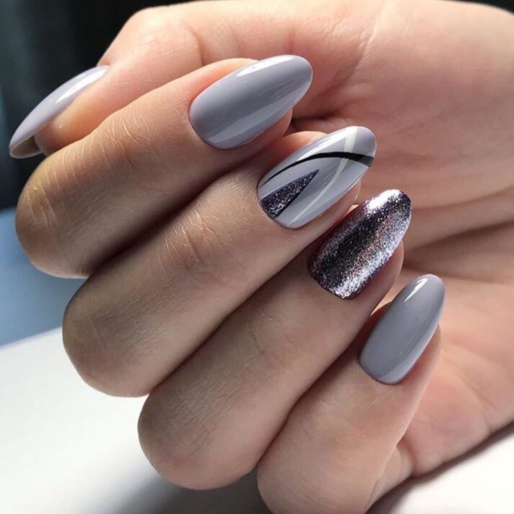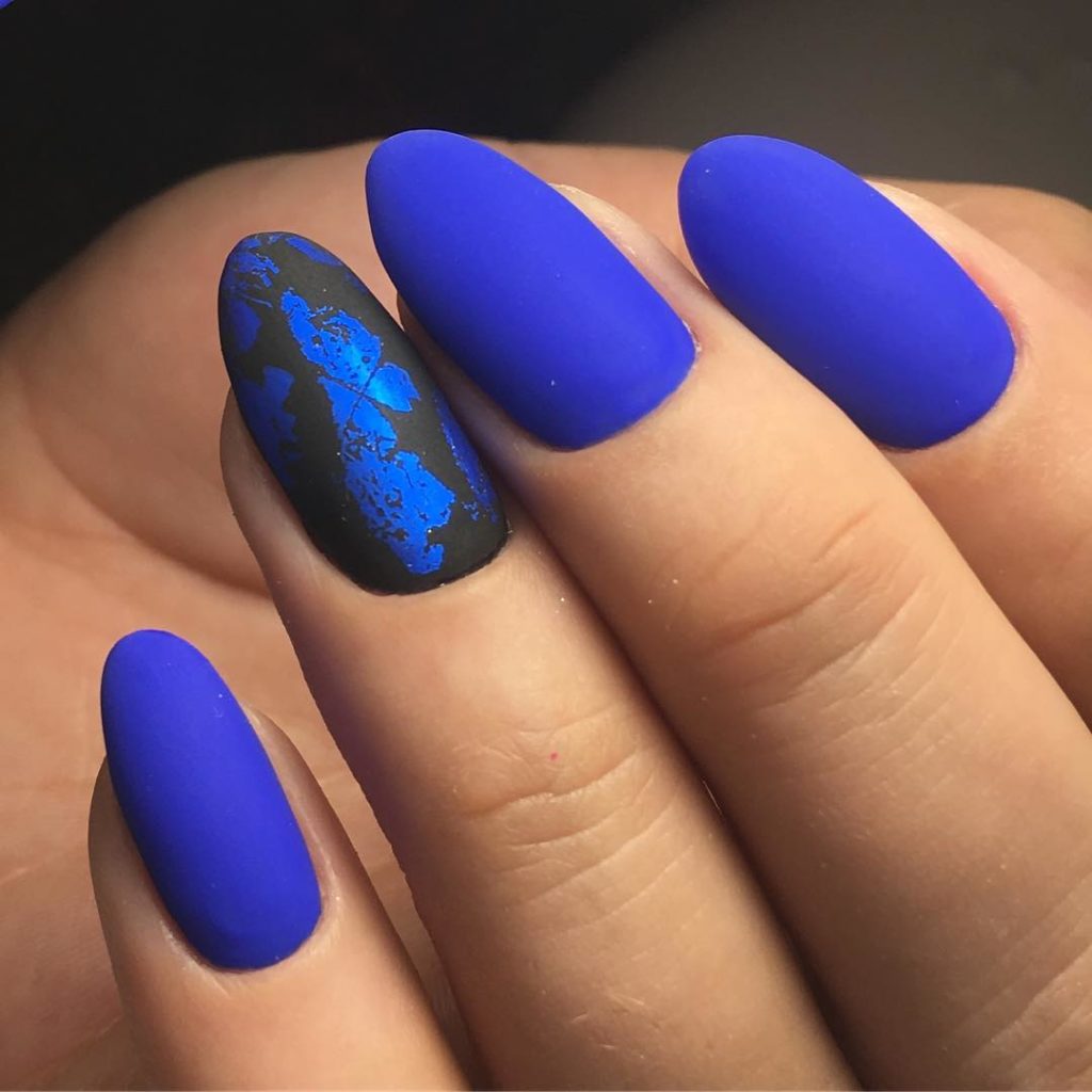 A rather interesting version of manicure such as contrasting manicure. And this is not only a standard combination of black and white. There can be a ton of options. For example, it is red and black, blue and yellow, burgundy and pale pink. Also, for a contrasting manicure, sparkles are perfect, which can be applied in a dense layer on one nail.