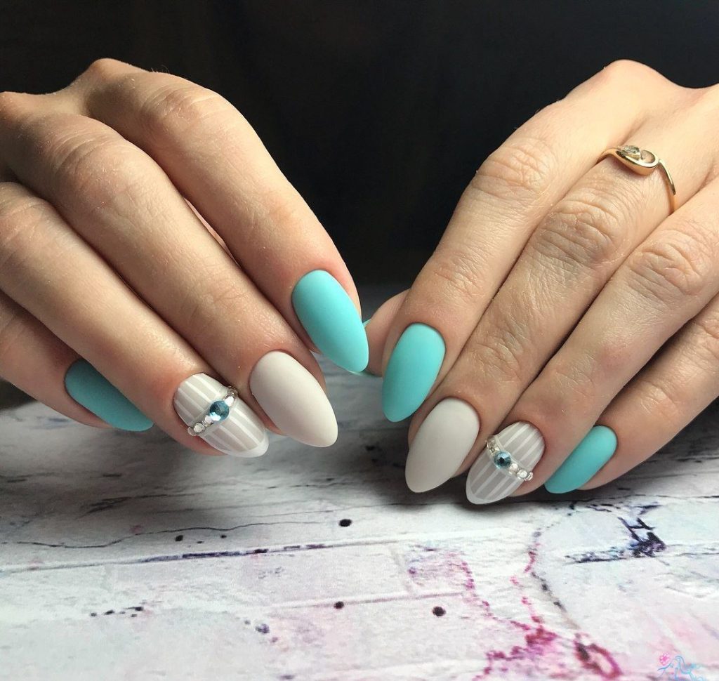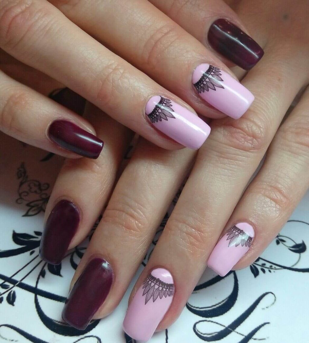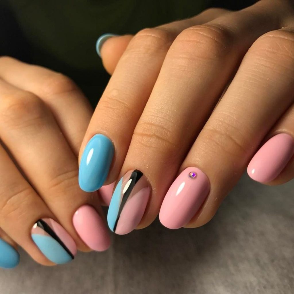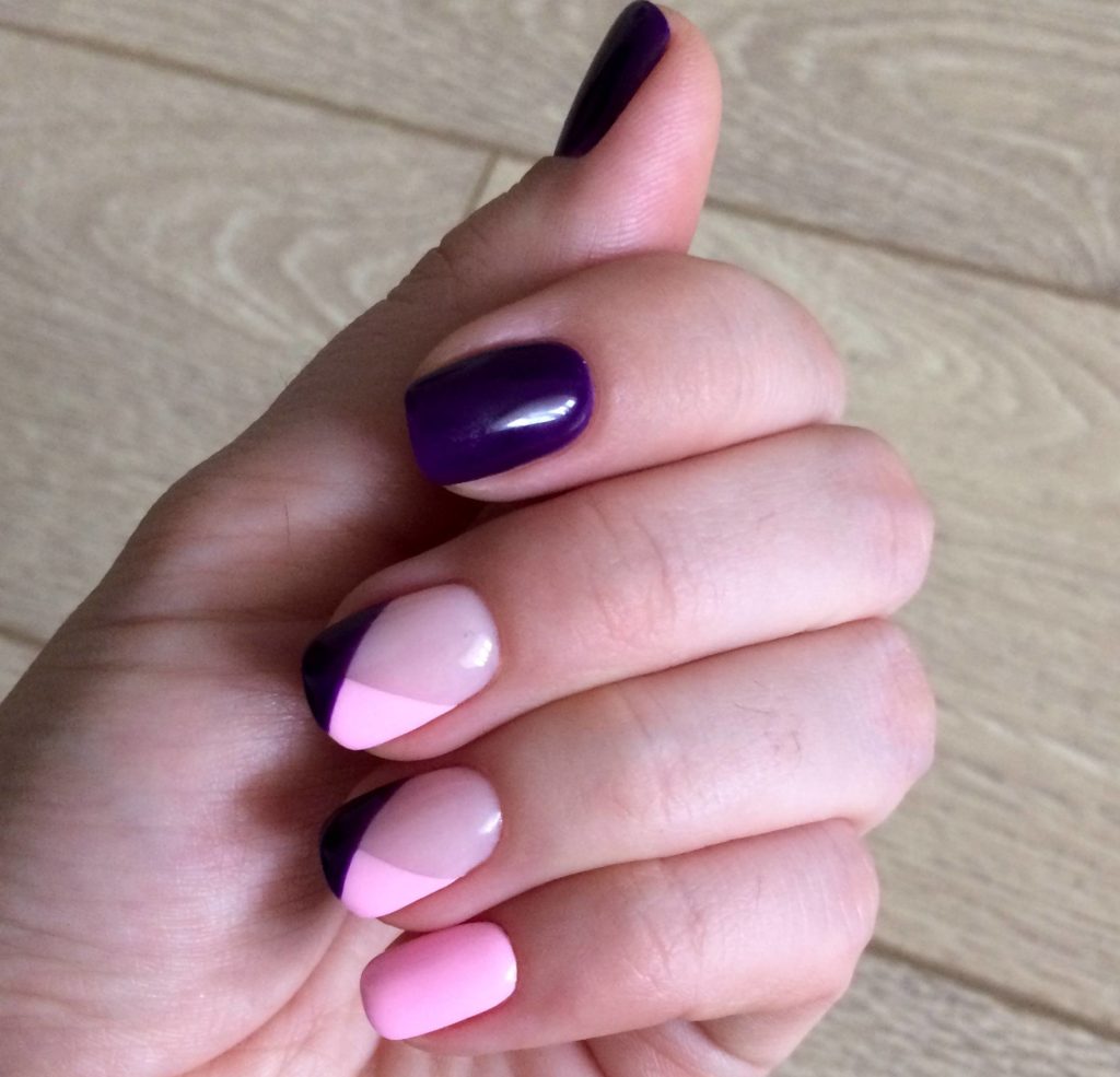 The most basic rule in such a manicure is that you take a dark saturated and some kind of light pale color. And so you can combine your favorite colors in one manicure.