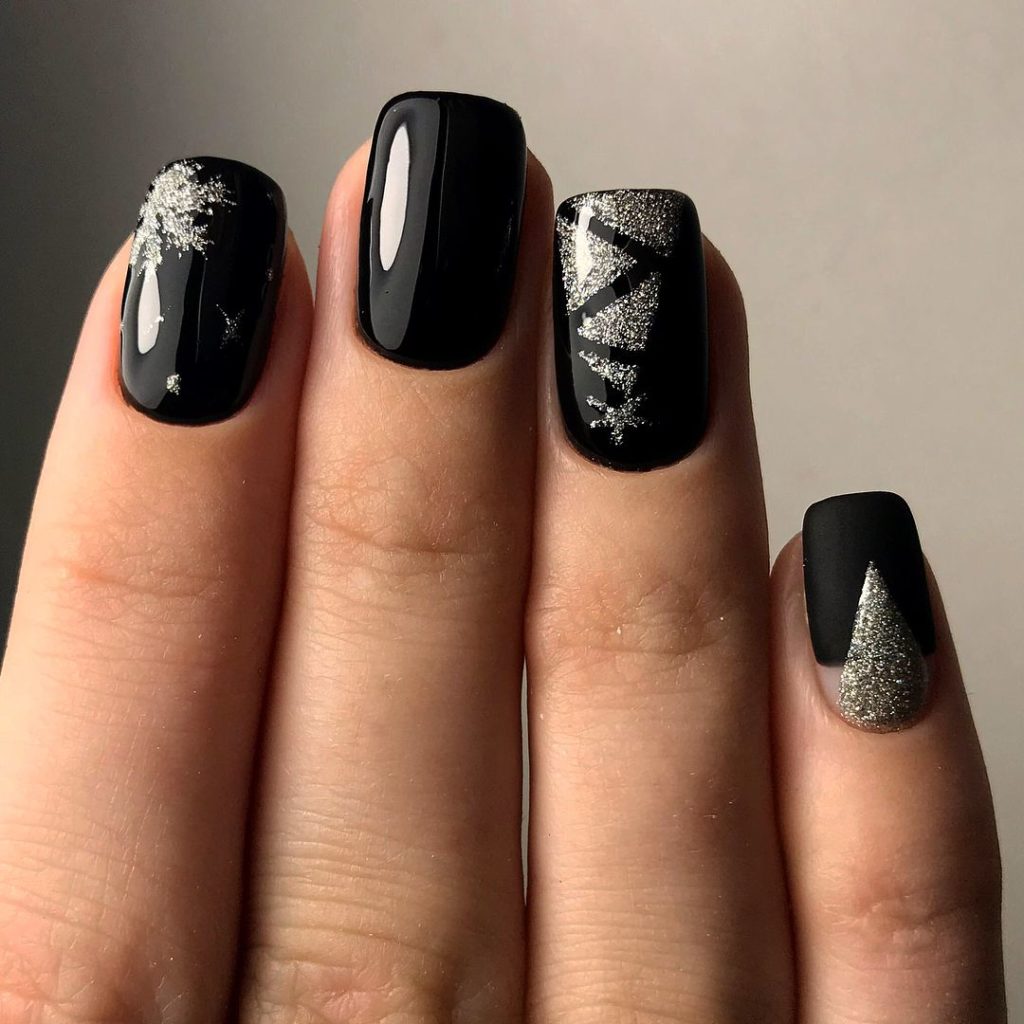 The black color in the winter manicure has always been, is and will be. This is already a kind of classic. And for the trendy winter manicure 2024 they suggest adding a golden color to it. Gold will make black manicure noble and expensive.