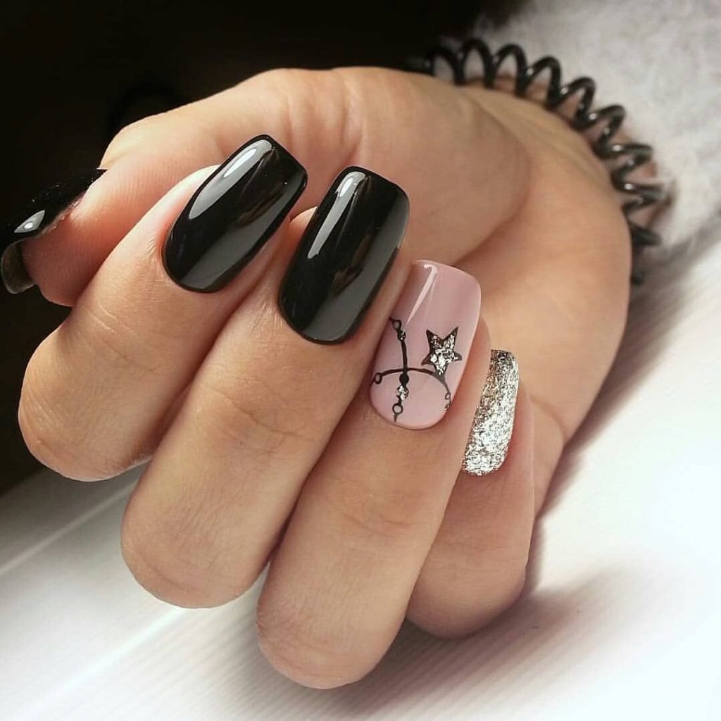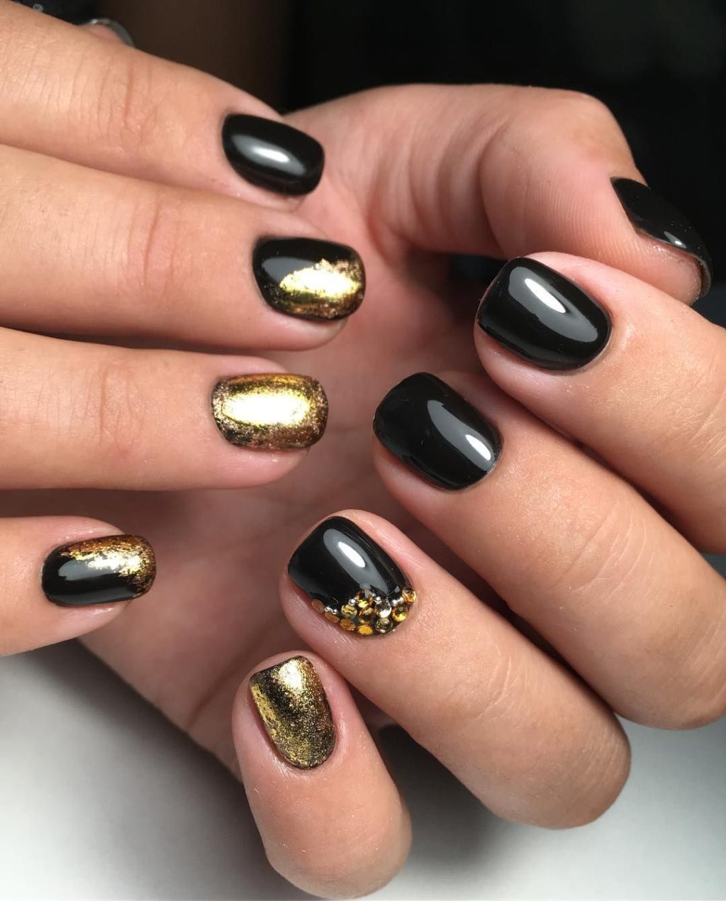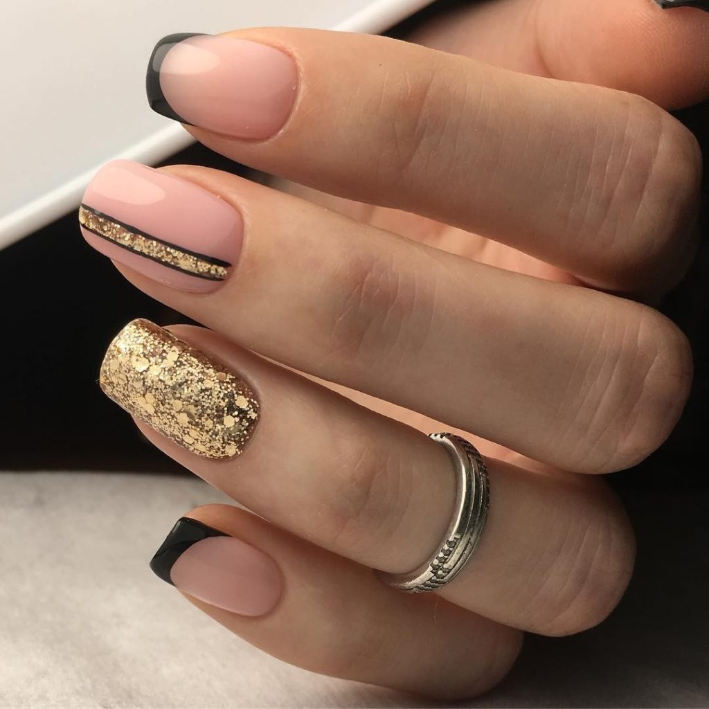 The combination of black and gold is a magical fusion of colors. This type of manicure is suitable both for everyday life and for holidays. In addition, with such a manicure, you do not need to think about combining it with clothes. Everything fits here.