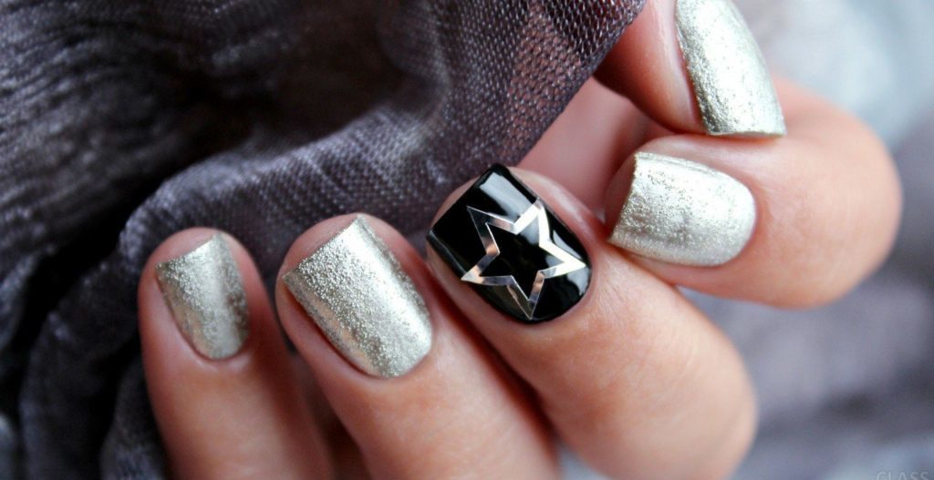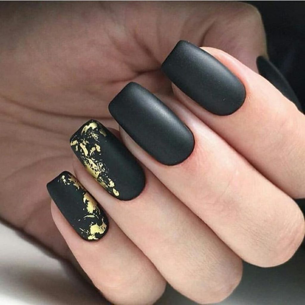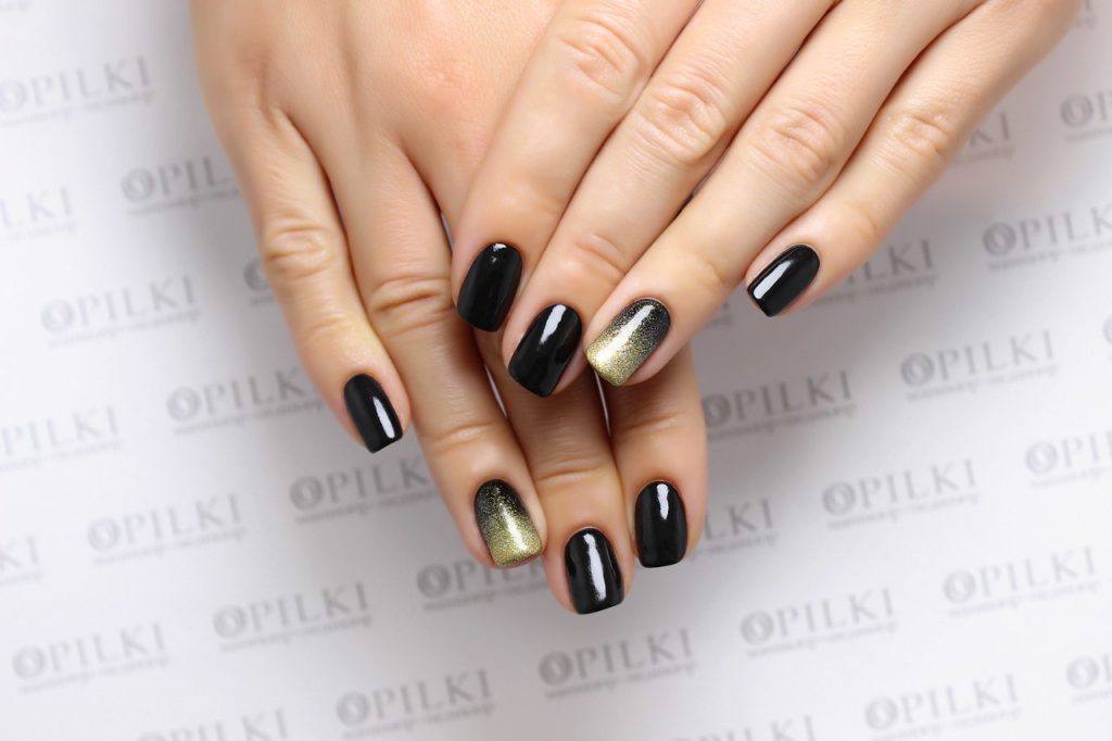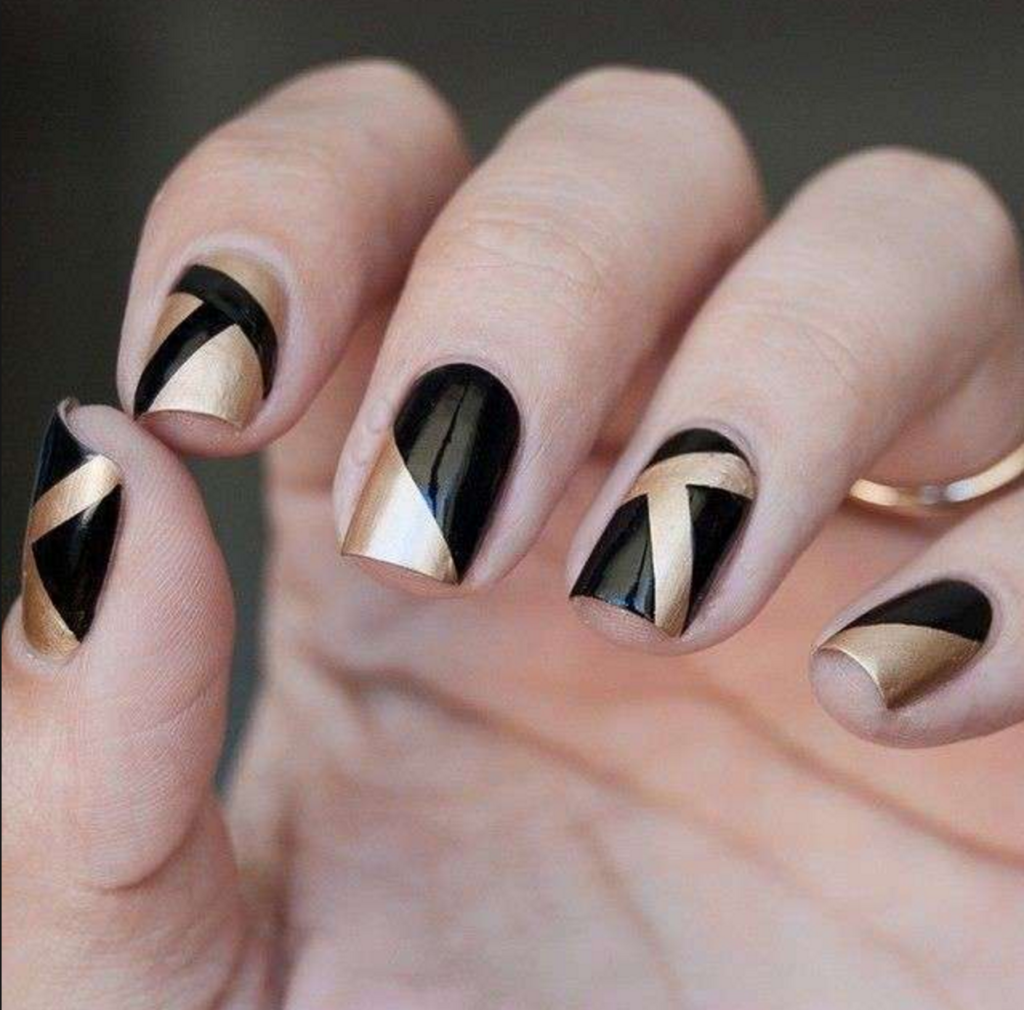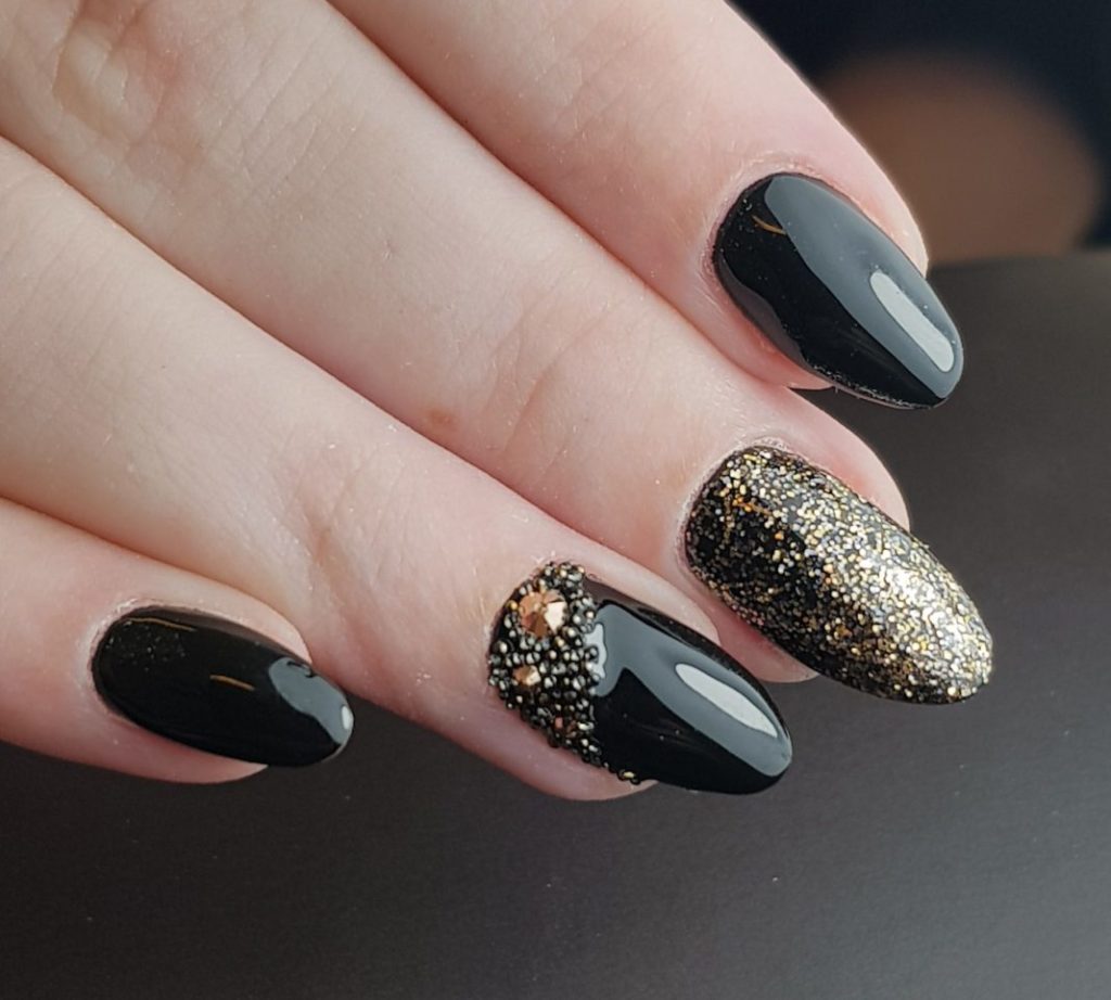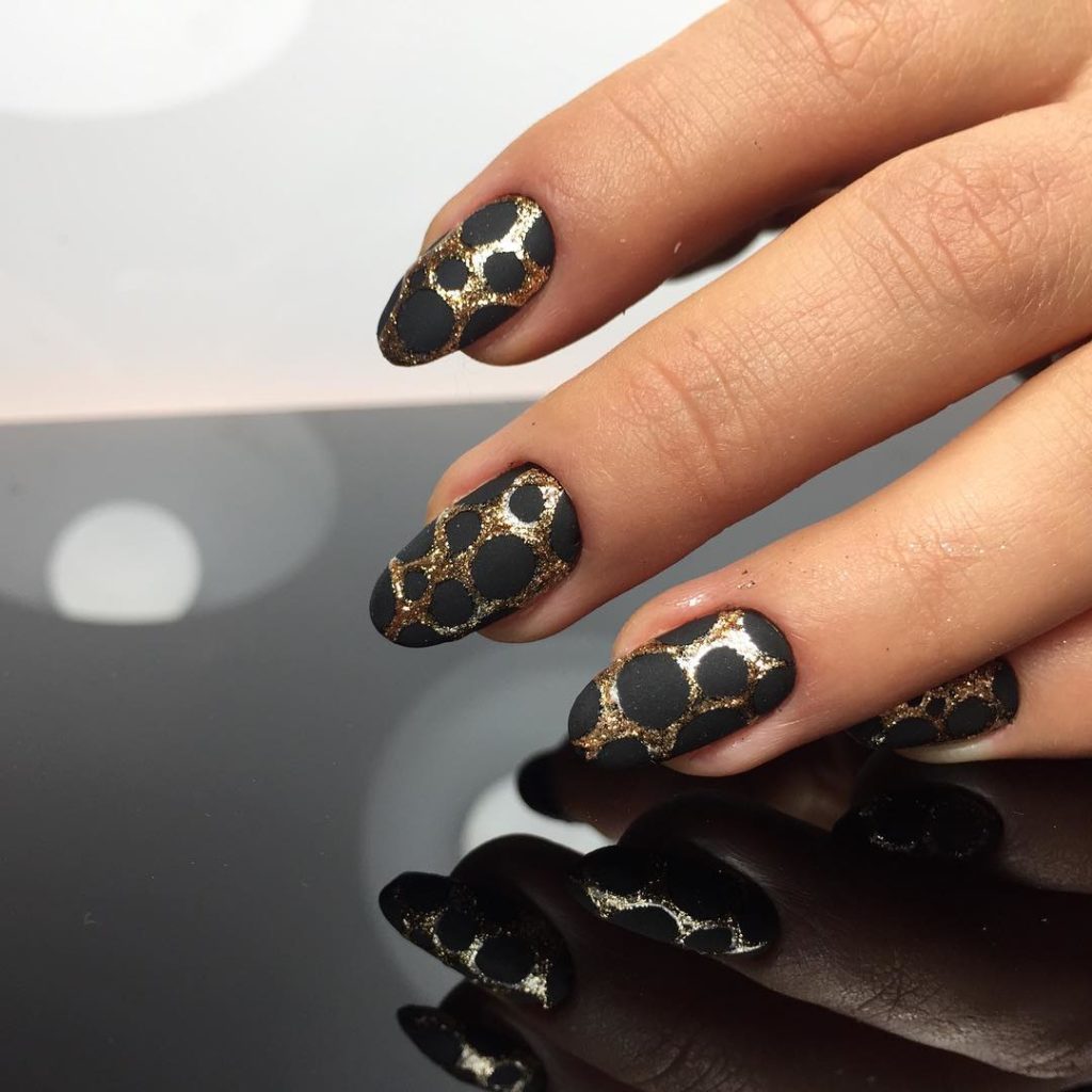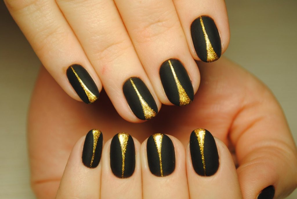Black manicure with gold