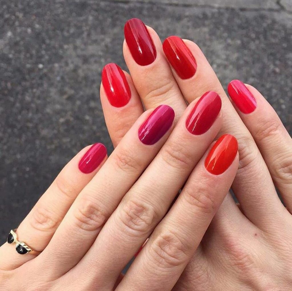 Transitional manicure is a very light and beautiful option. For such a manicure, it is better to use from two shades of a similar color of varnish. Do not confuse such a manicure with a gradient. In the transitional nail completely covered in one color. Some make the transition on all nails, from dark to light. And you can make a transition for several, for example, a lighter middle and anonymous, the rest are equally dark.