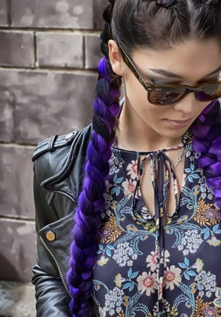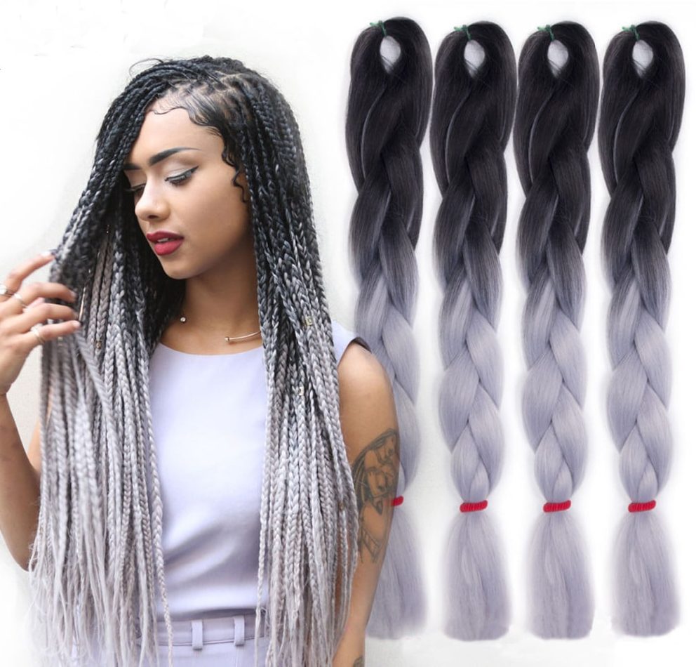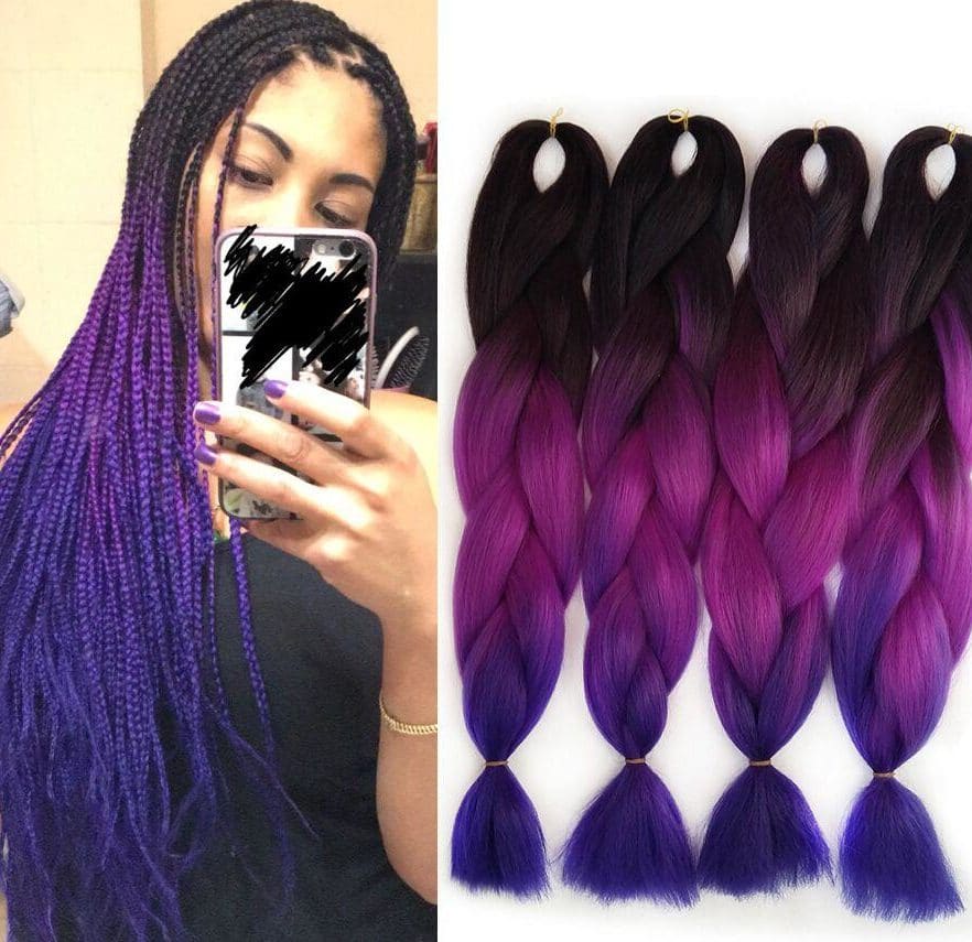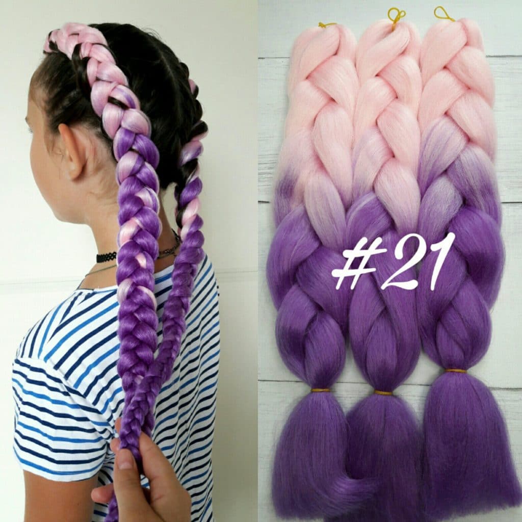 En otra versión, el ombre Kanekalon se ve muy bien con las trenzas francesas, danesas y de boxeo. Lo principal aquí es elegir su propia opción adecuada.