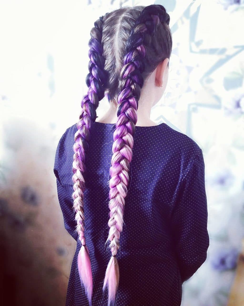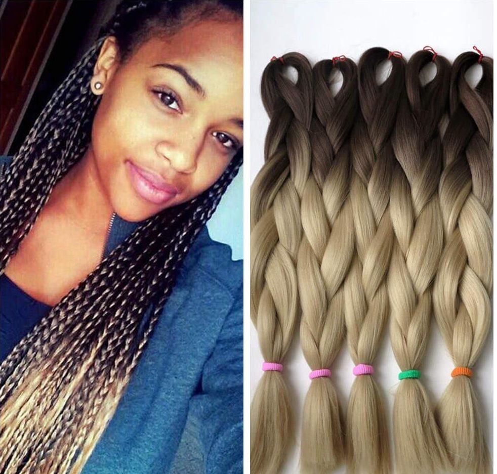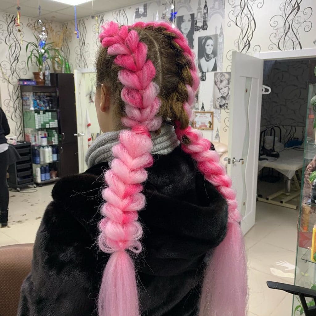 En otra versión, el ombre Kanekalon se ve muy bien con las trenzas francesas, danesas y de boxeo. Lo principal aquí es elegir su propia opción adecuada.