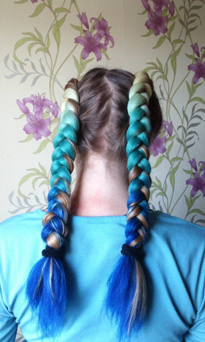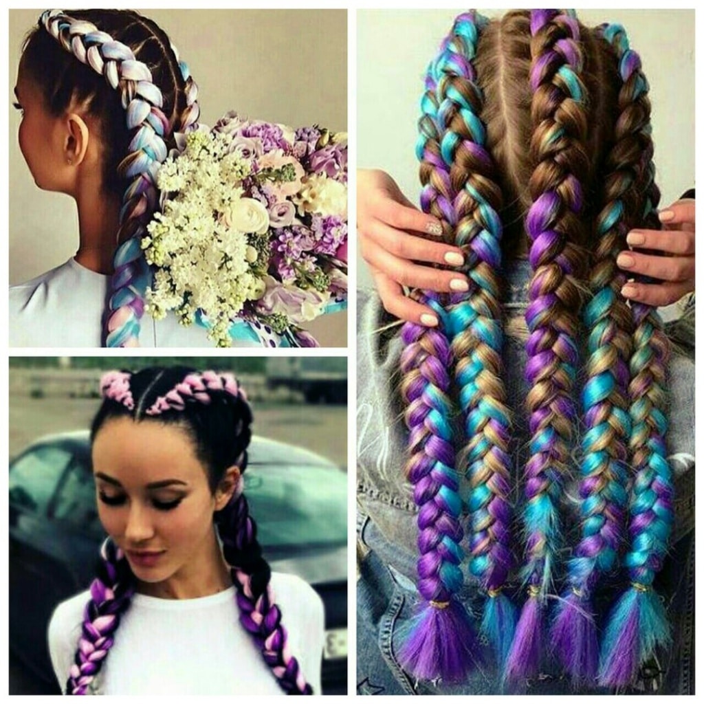 No siempre es posible encontrar un kanekalon multicolor adecuado para futuras trenzas, por lo que muchas mujeres eligen varias opciones simples y las combinan.