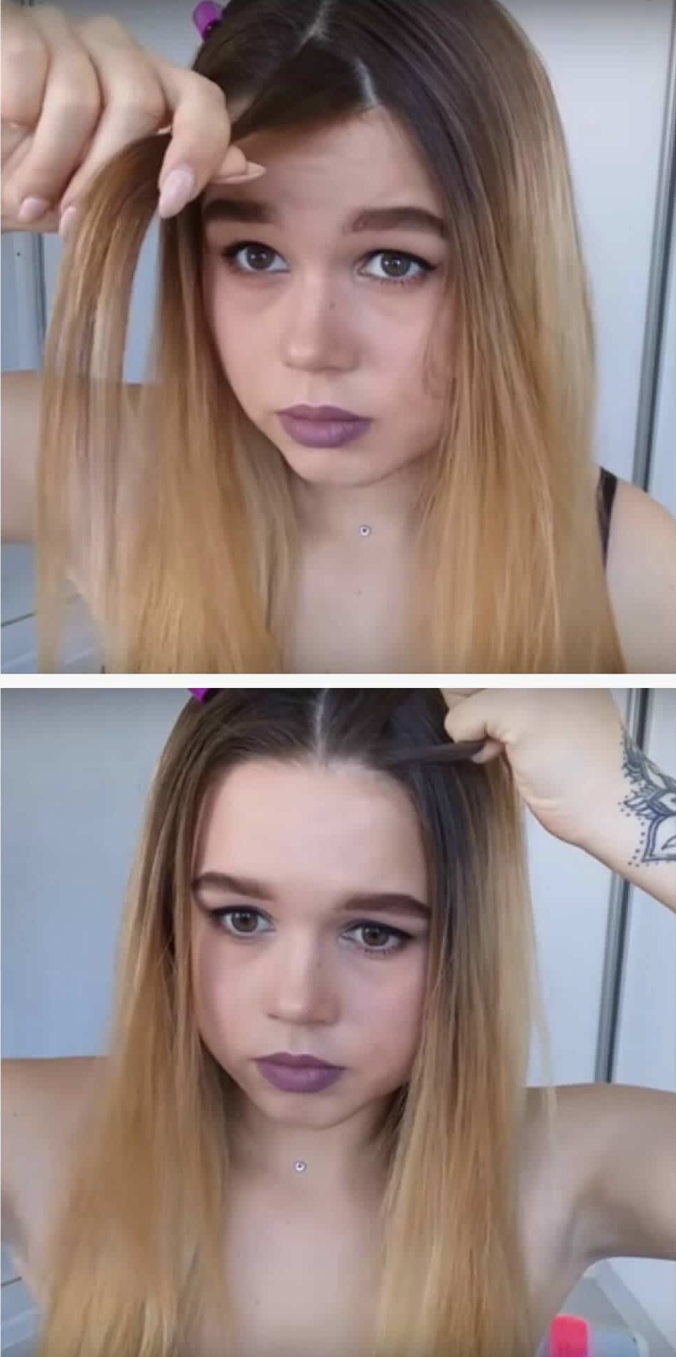 - Tome una cerradura en la zona parietal y divídala en tres partes, como para tejer una trenza regular.