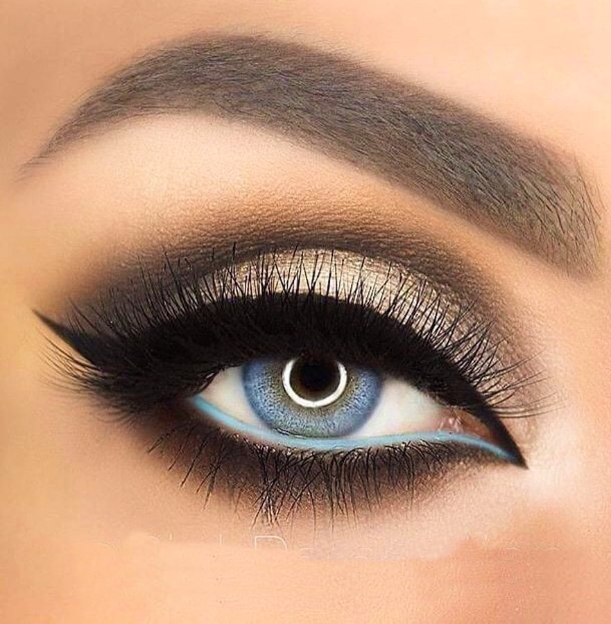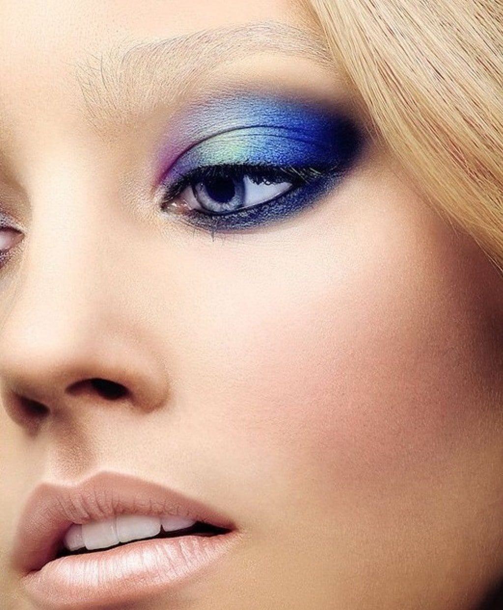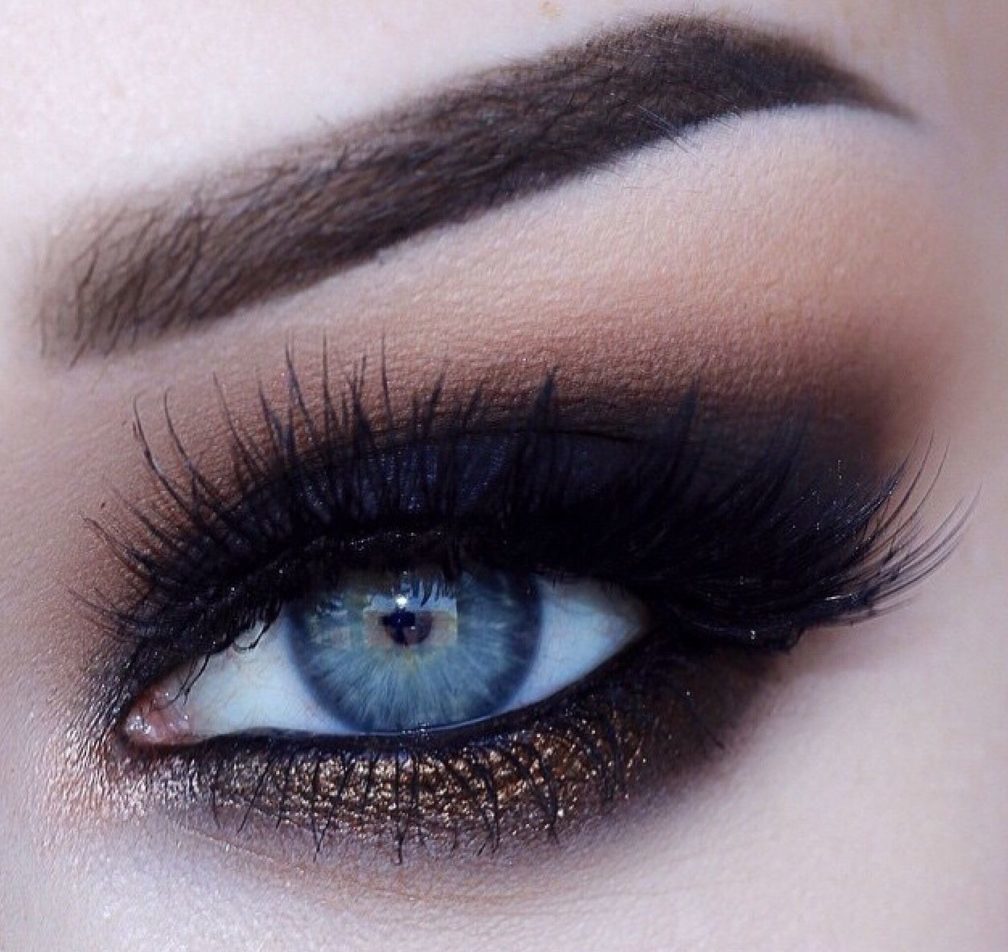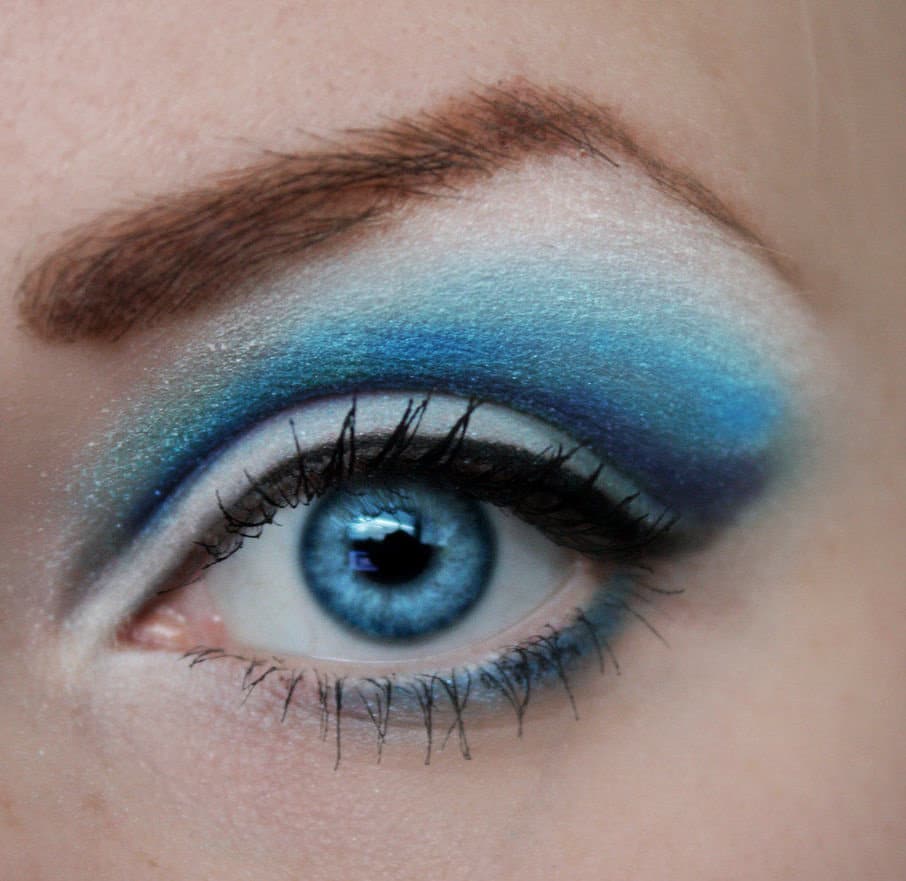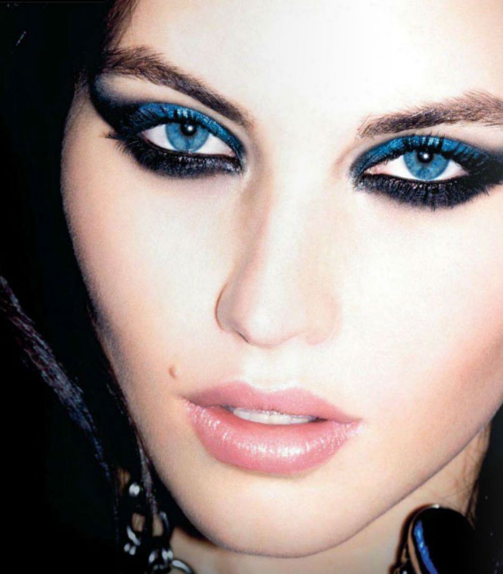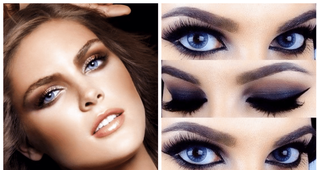 Tutte le sfumature scure di ombre come nero, scuroverde, blu scuro, marrone, grigio sono perfetti per gli occhi blu. Evidenzieranno i tuoi occhi scintillanti.