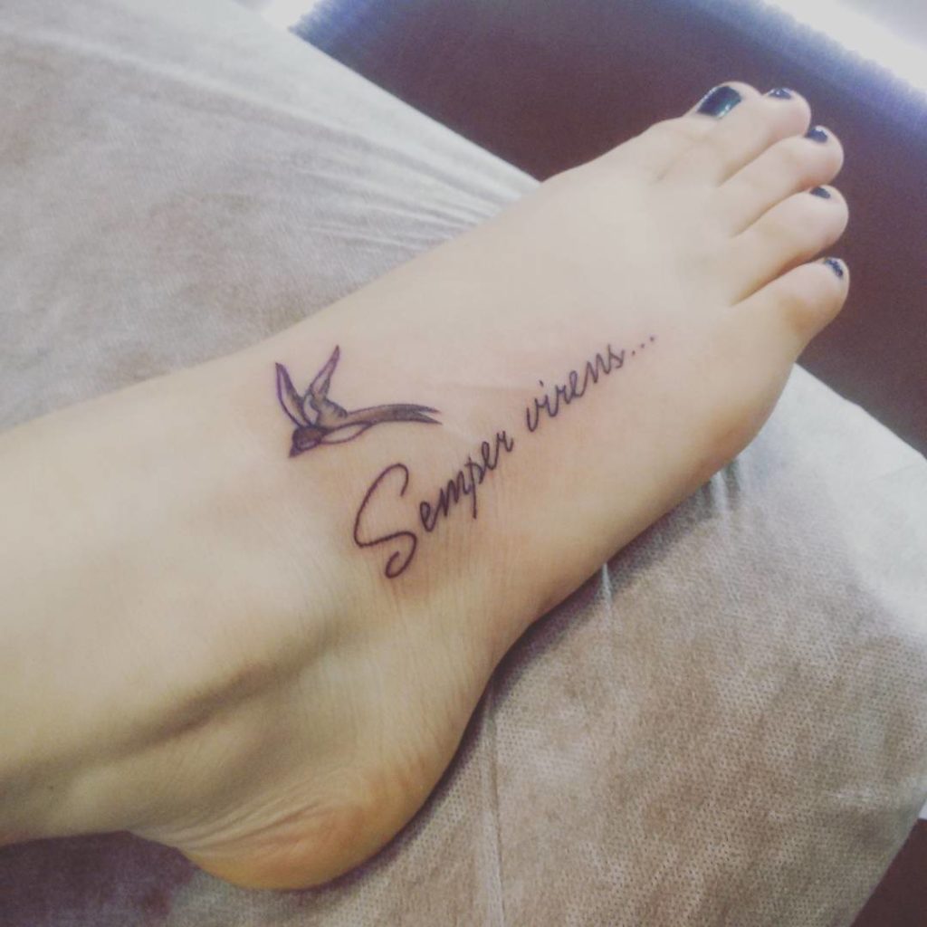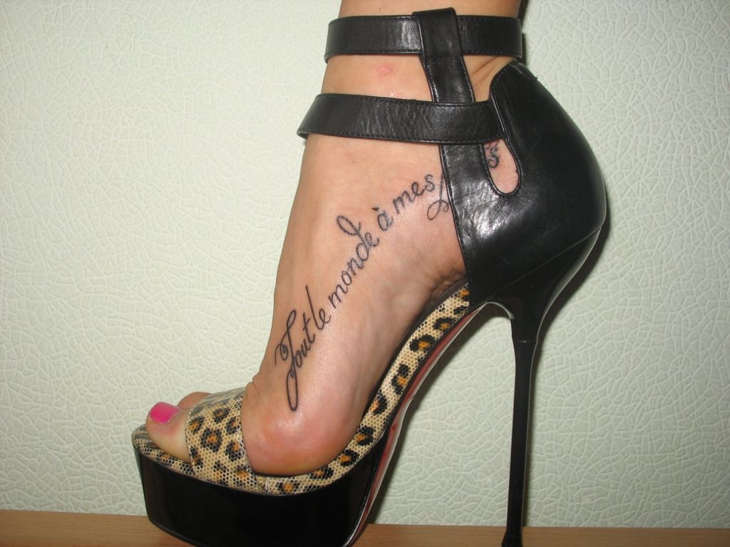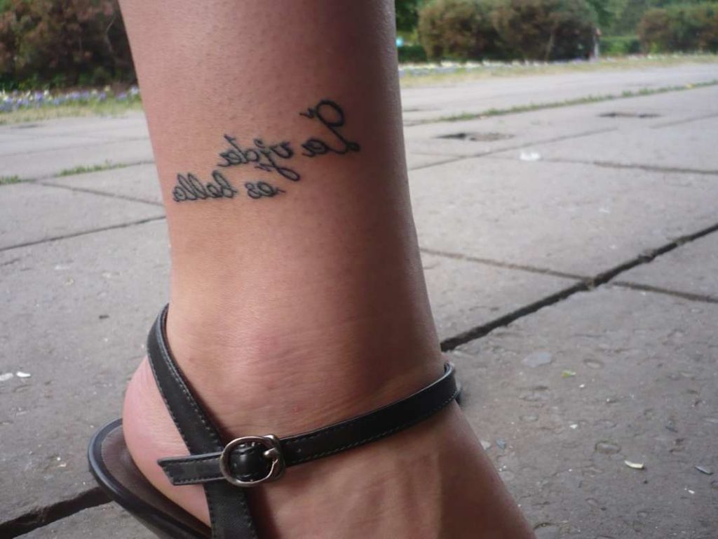 enkel kun je je been prachtig versieren met een tattoo-inscriptie, maar tegelijkertijd zal het niet pakkend zijn. Daarom, als je een beginner bent, is de enkel de meest ideale plek om te tatoeëren.