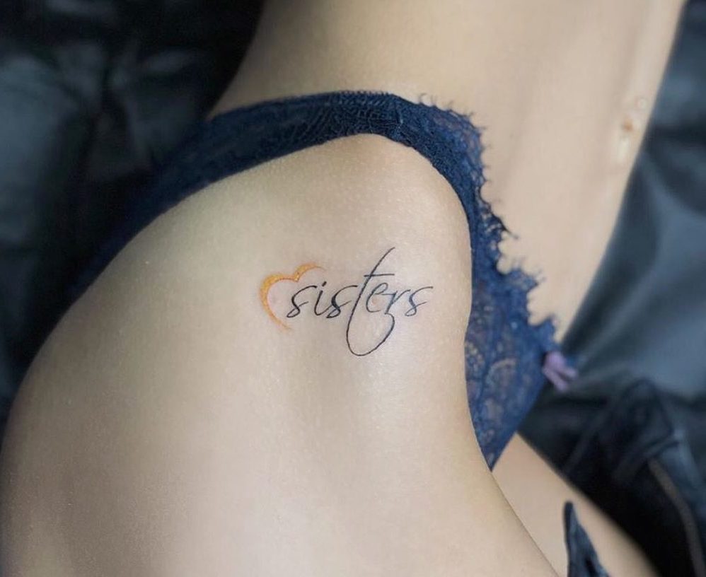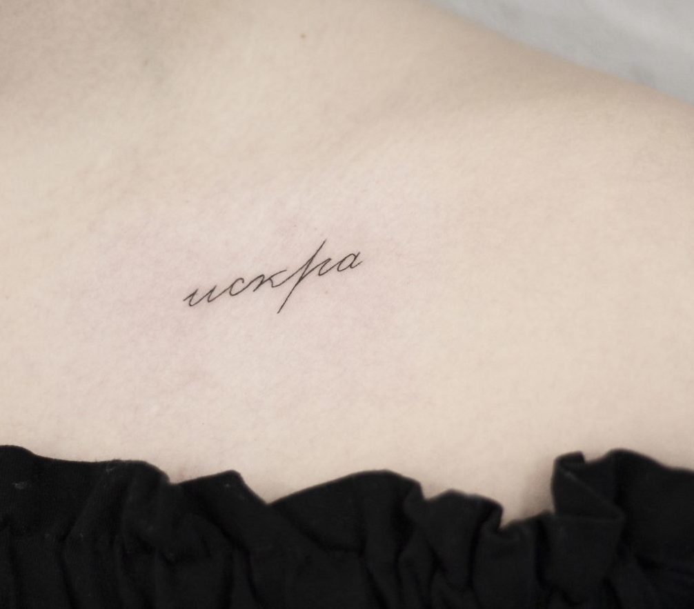 hier tattoo-inscriptie ziet er bijzonder mooi en sexy uit. U moet het horizontaal of met een lichte helling aanbrengen. Alleen in dit geval ziet je tatoeage er perfect uit.